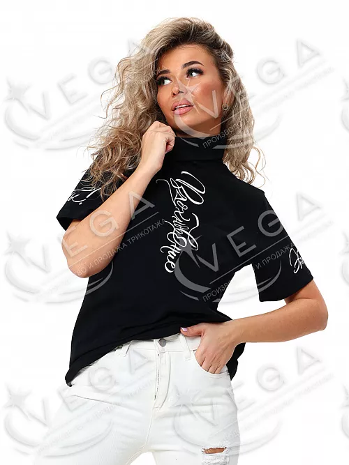 Стильная футболка с удлинённым рукавом сшита из ткани кулирка с лайкрой Fircha - имеет эффект бархата, за счёт чего она очень мягкая, приятная к телу и на ощупь. Станет прекрасным дополнением для вашего гардероба. Она отлично сочетает в себе все преимущества свитшота, джемпера, водолазки и кофты. Идеальный фасон с удлинённым рукавом в совокупности с воротником стойкой превосходно подойдет для любого события. Все дизайнеры мира сходятся во мнении, что воротник стойка подчёркнёт в образе женственность и элегантность. Именно поэтому мы использовали такой фасон при создании данной модели. И наши клиенты подтверждают, что мы не ошиблись с выбором. Надев лонгслив с пиджаком, Вы создадите образ деловой и стильной девушки. А если Вы решите надеть футболку с джинсами и кроссовками и отправиться на прогулку, то получится образ утончённый и романтический. Можно купить футболки и белого, и чёрного цвета. Каждая из них по своему хороша. Стильный принт дополнит Ваш образ. Мягкая хлопковая ткань футболки приятная на ощупь и не нарушает воздухообмен, поэтому в ней тепло, когда на улице мороз и прохладно в жарком помещении. Добавление небольшого количества полиэстера продлевает изделию жизнь, позволяет сохранять идеальную форму и садится прекрасно по фигуре.