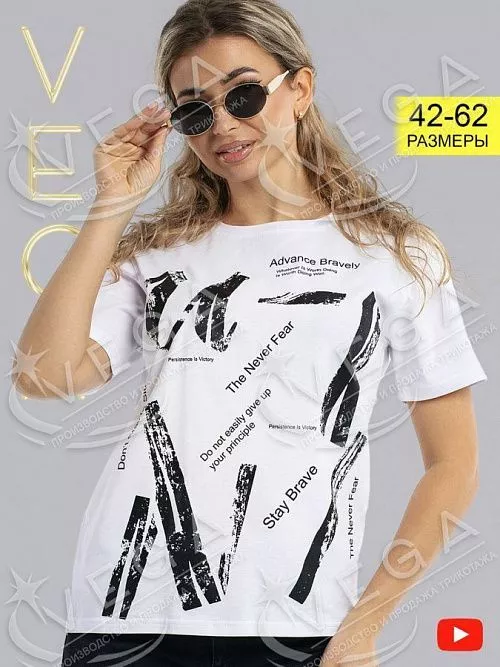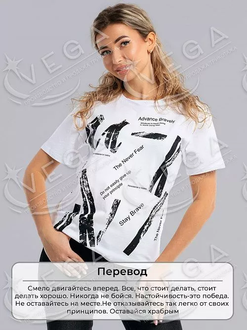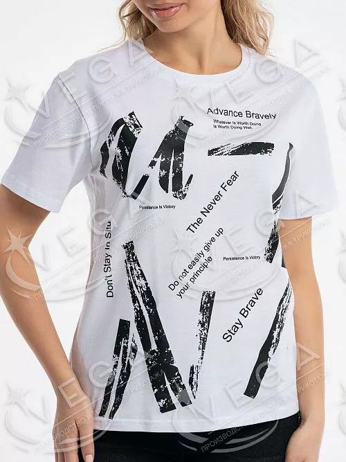 Футболка классического фасона, сшита из ткани кулирка с лайкрой, с округлым вырезом с усилением горловины. Она мягкая, приятная к телу и на ощупь, не нарушает воздухообмен, поэтому в ней тепло, когда на улице прохладно и комфортно в жарком помещении. Небольшое количество лайкры в составе ткани продлит изделию жизнь и не даст потерять вид нового товара, так как обладает уникальной способностью к растяжению и восстановлению формы. Такая модель станет прекрасным дополнением вашего гардероба. Она отлично подойдет для любого образа. Большой выбор из ассортимента моделей с разными принтами поможет вам выбрать любимую. Надев футболку с пиджаком, Вы создадите образ деловой и стильной девушки. Если Вы решите надеть ее с джинсами и кроссовками и отправиться на прогулку, то получится образ утончённый и романтический. Каждая из них по своему хороша. Стильный принт делает модель индивидуальной и заметной. Уважаемые покупатели! Обращаем Ваше внимание, что цветовая гамма изделий может отличаться от цвета на фото.