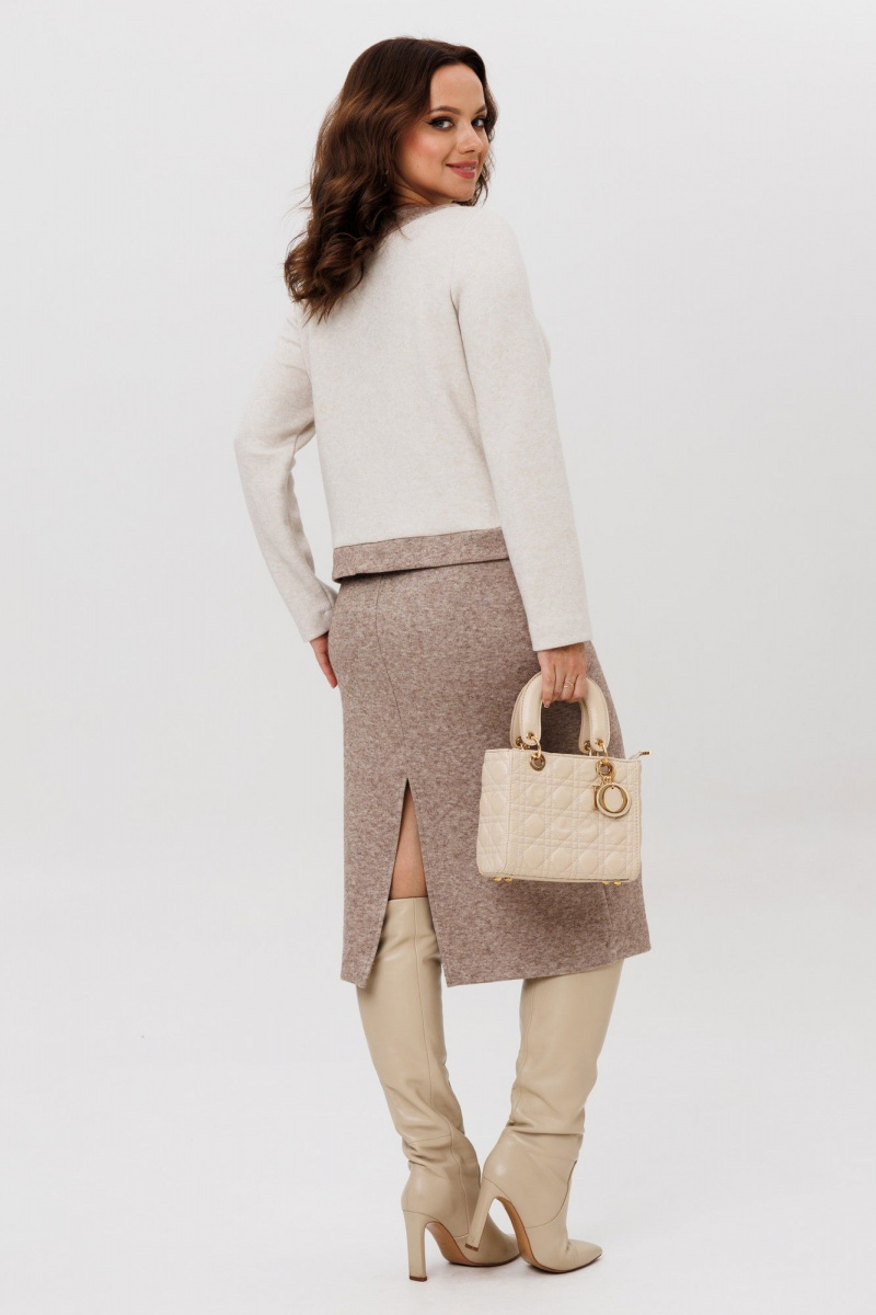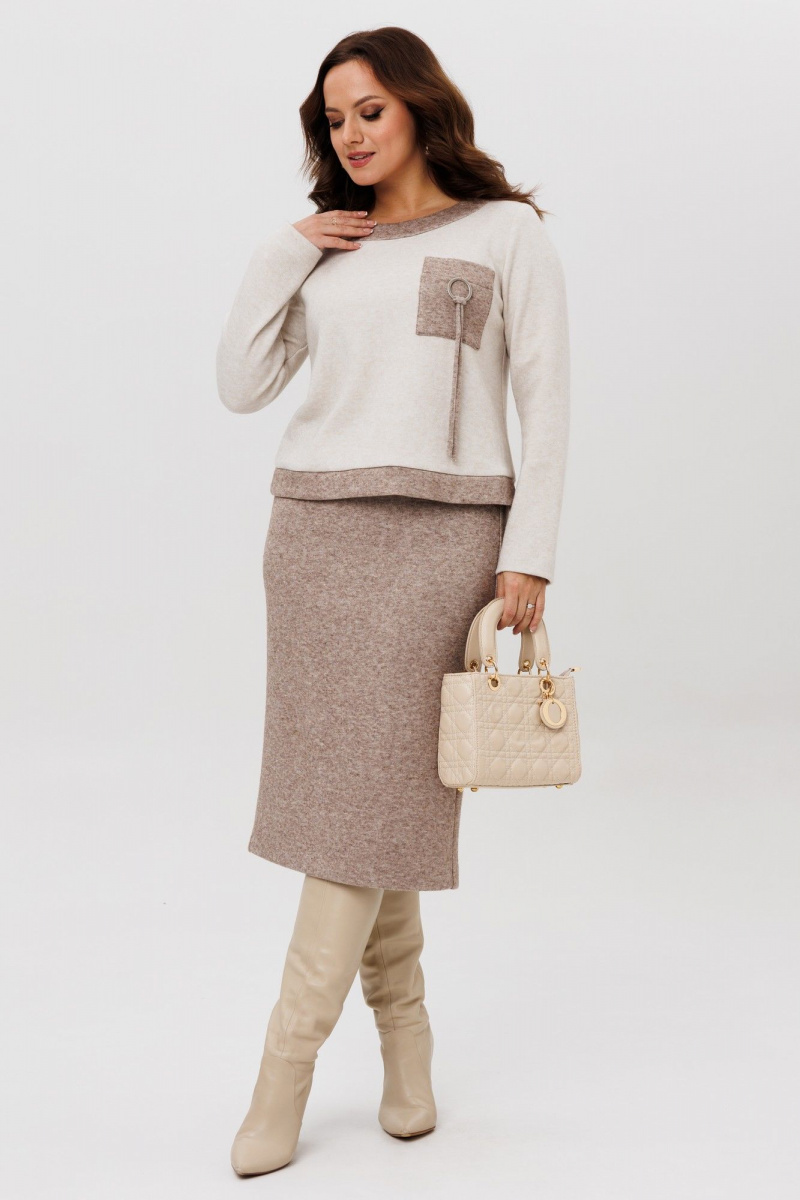 Осенний комплект джемпер и юбка , выполнен из мягкой и приятной к телу трикотажной ткани с добавлением натуральных нитей, которые обеспечивают комфорт и тепло в течение всего дня. Данный юбочный костюм идеально подходит как для офиса, так и для неформального повседневного использования.