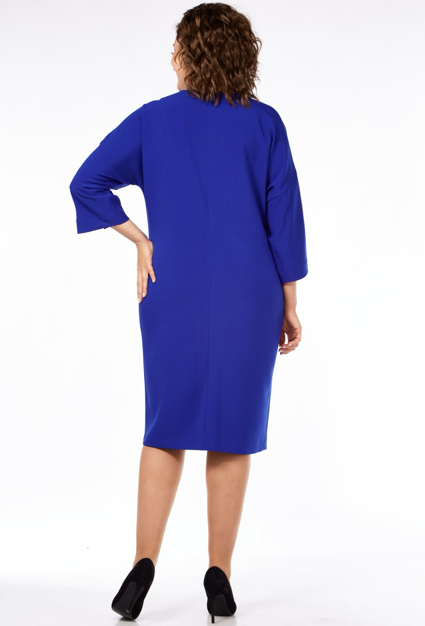 Платье женское полуприлегающего силуэта покроя «летучая мышь». Полочка имеет центральный шов, в котором обработан разрез и проложены отделочные строчки. По линии бедер настрочены клапаны. спинка со средним швом, в котором обработана потайная застежка «молния». Отрезной рукав из двух частей имеет центральный шов и разрез с отделочными строчками.