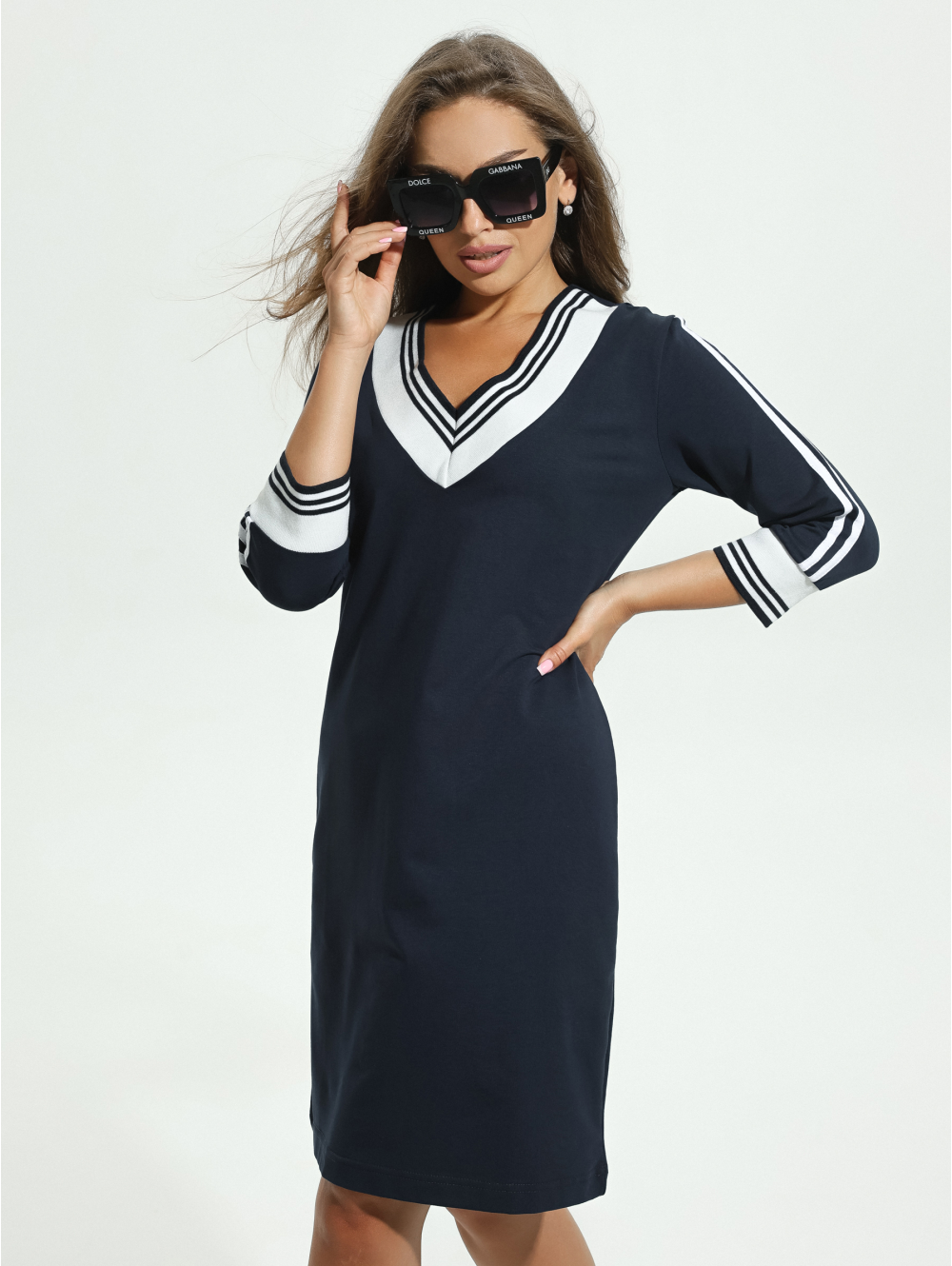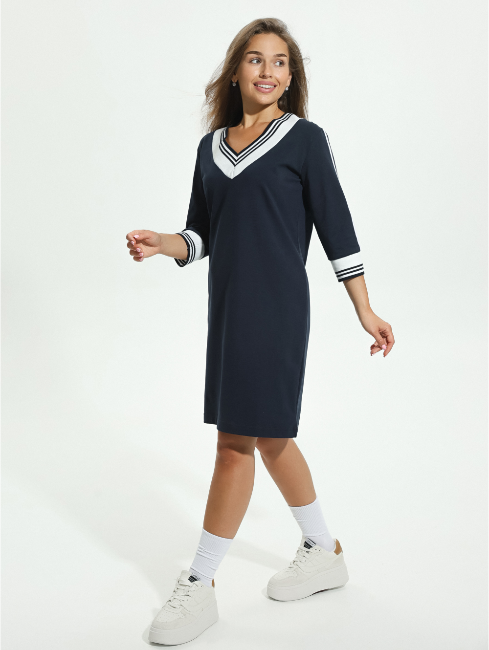 Повседневное женское платье спортивного типа выполнено из футера двунитки.