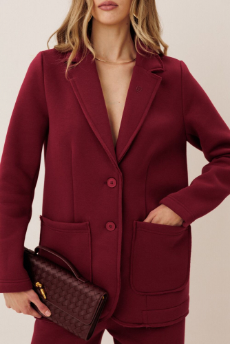 Жакет в  стиле smart casual. Жакет прямого силуэта с пиджачным воротником, имеет удобные накладные карманы и застежку на 2 пуговицы. На левом лацкане вышивка-логотип в цвет ткани. Низ и борта имеют открытые края (эффект необработанного шва), укреплены дополнительной строчкой. Жакет без подкладки.