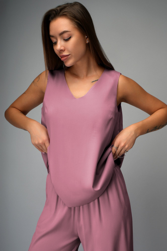 Женские штаны с эластичным поясом на резинке не стесняют движений, по бокам есть кармашки. Благодаря свободному крою и мягкой ткани весенний костюм идеально подойдет для любого типа фигуры. Костюм женский летний с брюками универсален для разных ситуаций: от прогулок до мероприятий. Однотонный костюм можно носить как в комплекте, так и по отдельности.
