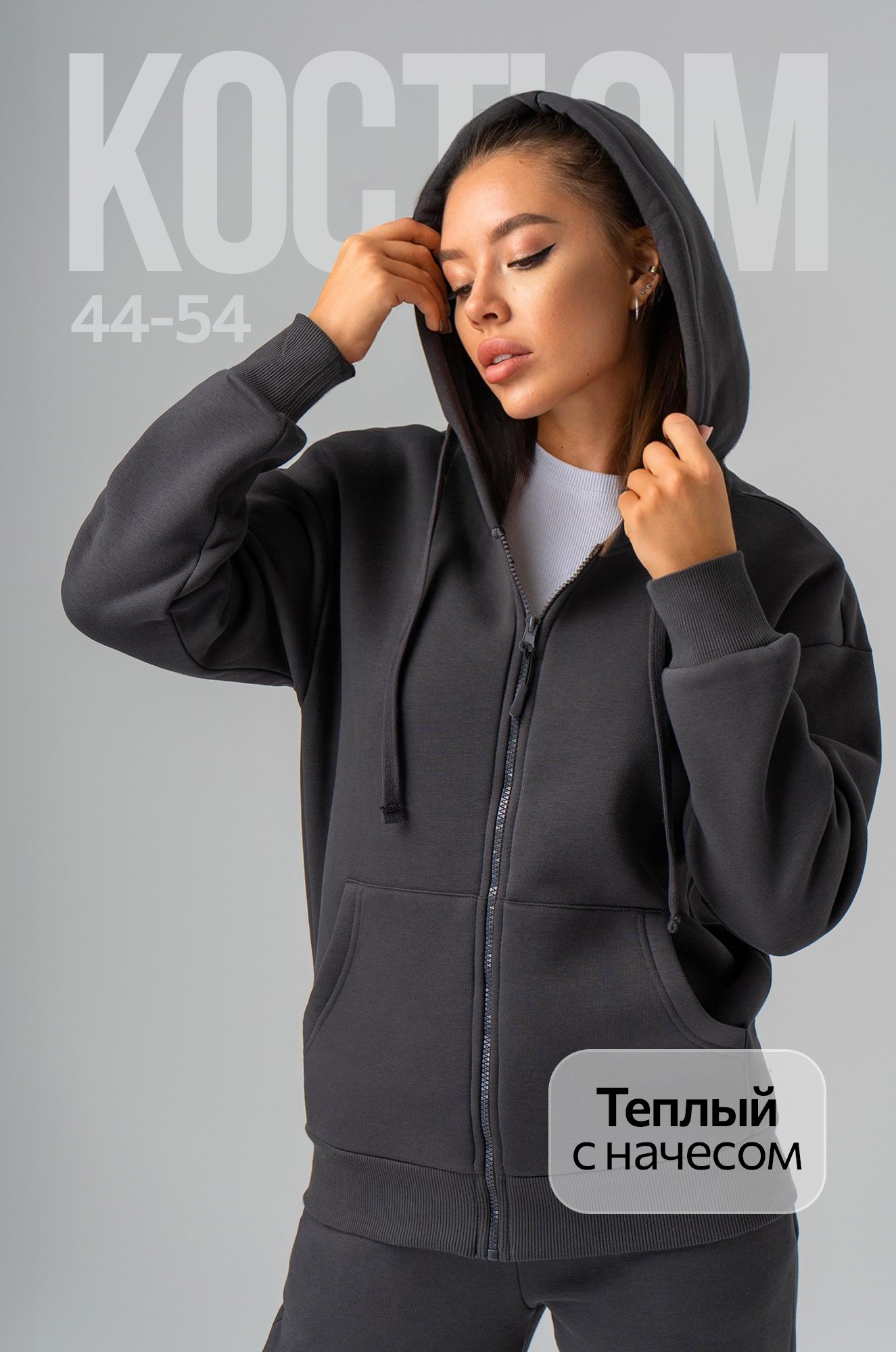 Женский теплый костюм с начесом — стил..показатььное и практичное решение для холодного времени года. В набор входят худи на молнии с капюшоном и удобные брюки-джоггеры.