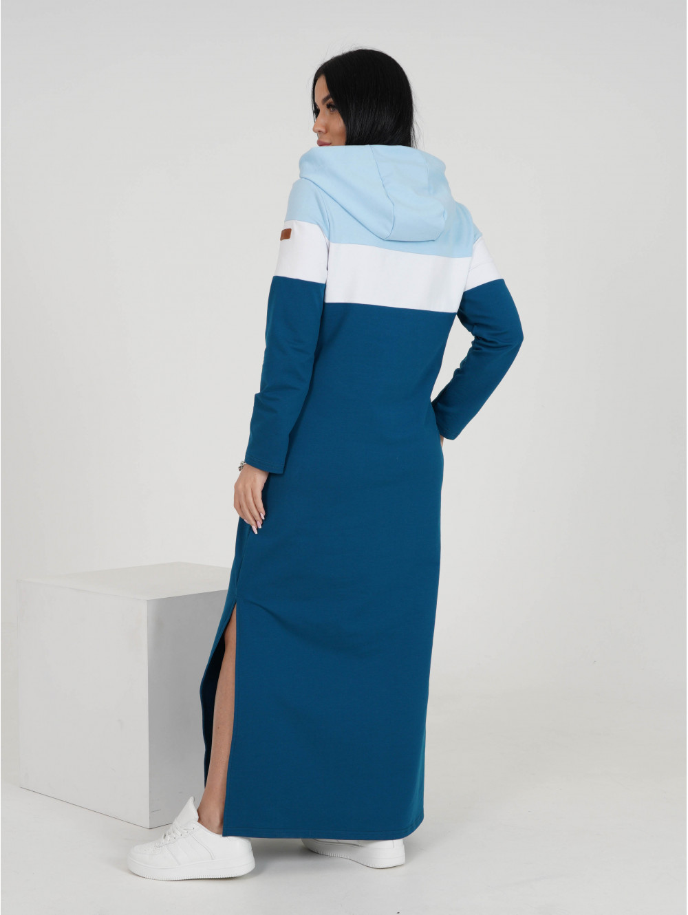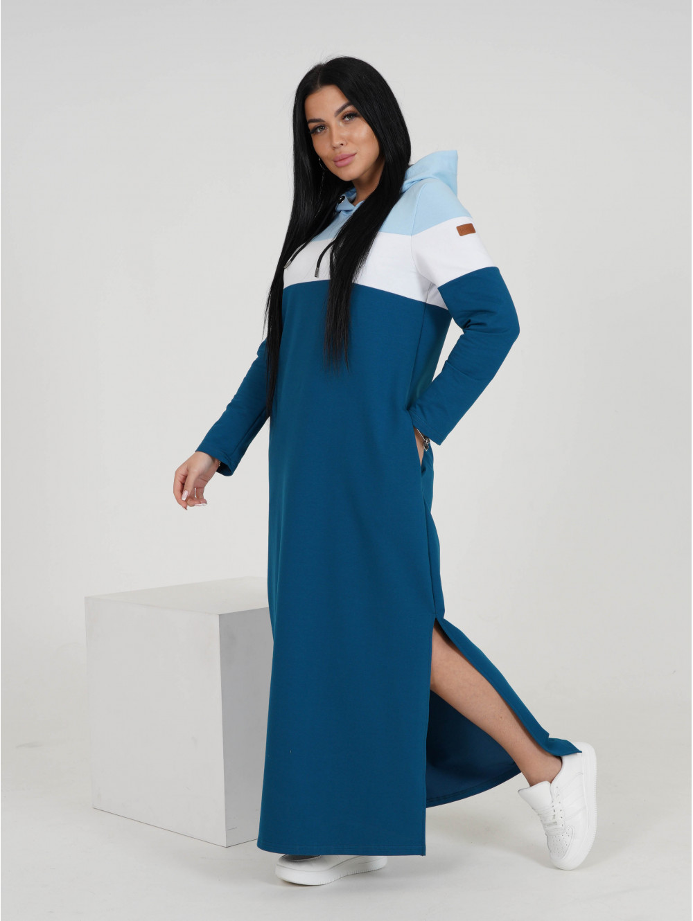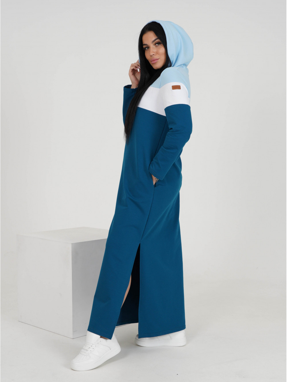 Наше платье ХАДИЖА длиной до щиколотки, выполненное из ткани футер 2х-нитка, подойдет для высоких представительниц слабого пола. Яркое цветовое решение придает красок модели. Платье удобно в носке: по бокам выполнены разрезы, в швах располагаются внутренние карманы. Капюшон выполняет как функциональную, так и эстетическую роль.