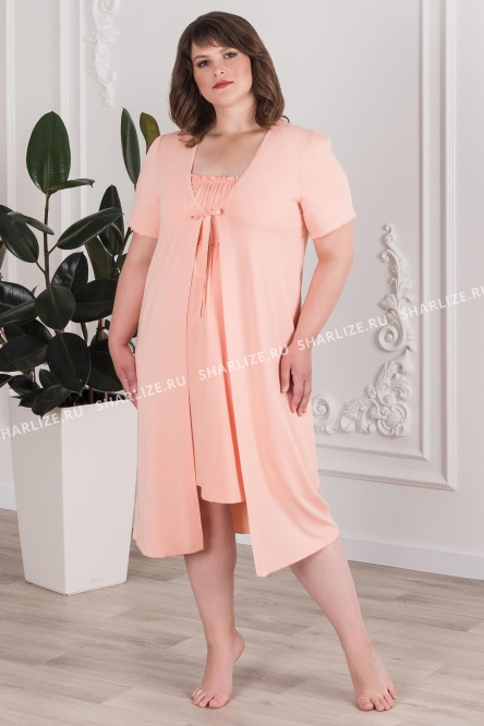 Халат нежного персикового оттенка из струящейся вискозы, подарит приятные ощущения и легкость в движениях.