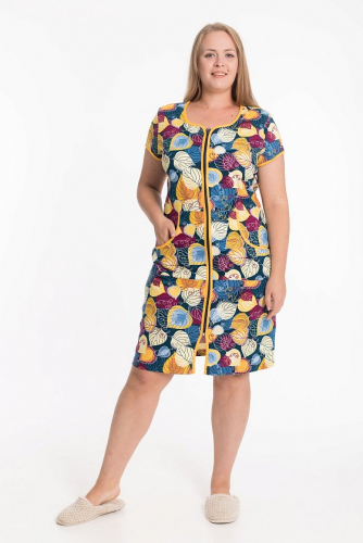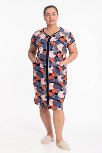 Женский халат на молнии из х/б полотна с набивкой. По бокам расположены карманы.