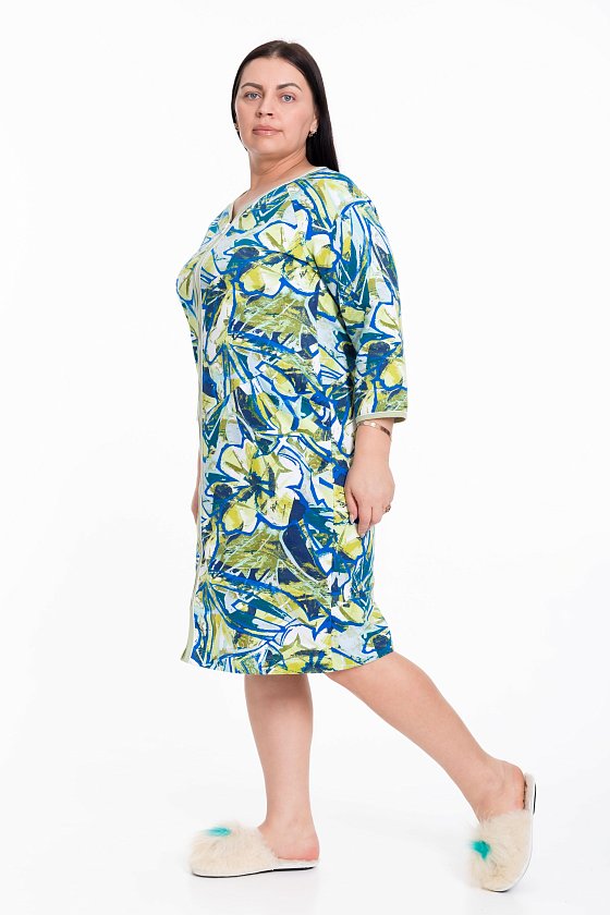 Женский халат из футера 2х нитки с начесом - отличный выбор для домашнего отдыха. Прямой крой и рукав-реглан 3/4 обеспечат комфортную посадку. Фигурный вырез горловины добавляет изящества и элегантности к халату, а обработка бейкой с белым кантом придает изделию законченный вид.