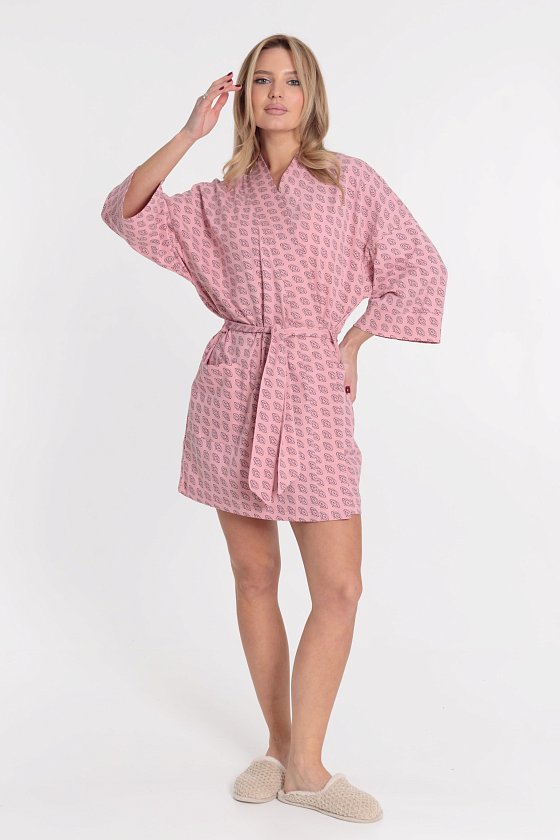 Женский халат на запах с поясом выполнен из кулирки, 100% хлопок. Свободный покрой даёт идеальную посадку на любую фигуру. Рукава широкие, линия плеча спущена, по бокам расположены два кармана.