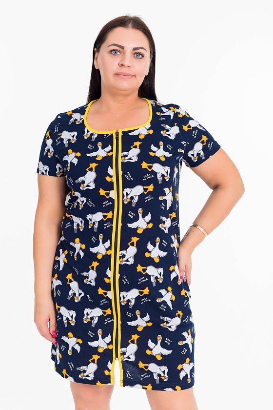 Халат из кулирки с застежкой на молнию и боковыми карманами.