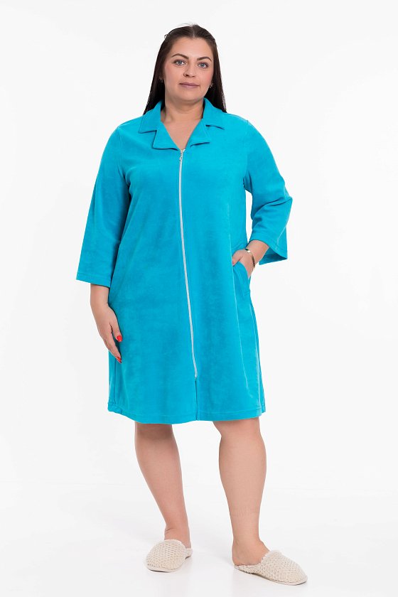 Женский халат — идеальный выбор для домашнего отдыха. Он выполнен из мягкого и приятного на ощупь однотонного велюра бирюзового цвета, который обеспечивает комфорт и тепло.