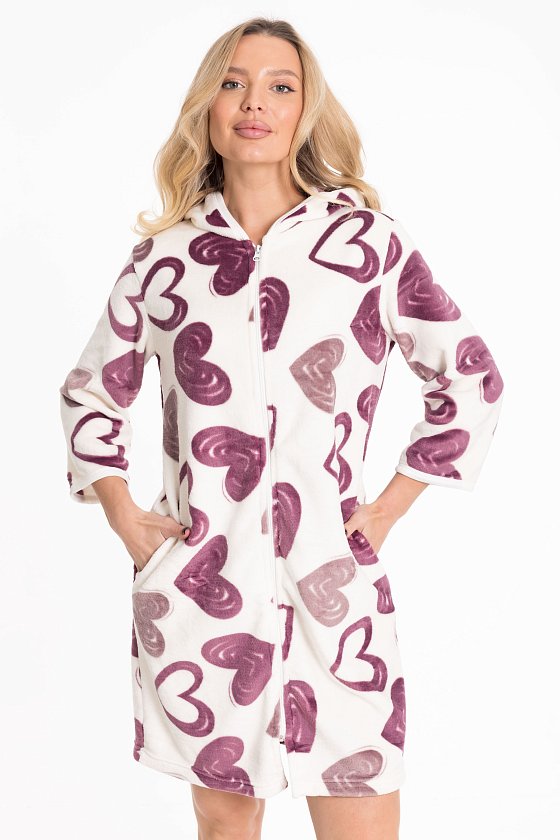 Женский халат из велсофта - очень мягкий и уютный. Прямой силуэт с молнией по центру и капюшоном делает халат одновременно удобным и стильным. Удобная длина рукава 3/4 обеспечит свободу движений, а карманы добавят практичности. Отделка швов бейкой из отделочного полотна придает халату завершенный вид и дополнительный стильный акцент. Велсофт известен своей мягкостью и приятной на ощупь текстурой, что делает этот халат идеальным для уютных моментов дома. Этот халат будет отличным выбором для расслабляющего и комфортного отдыха.