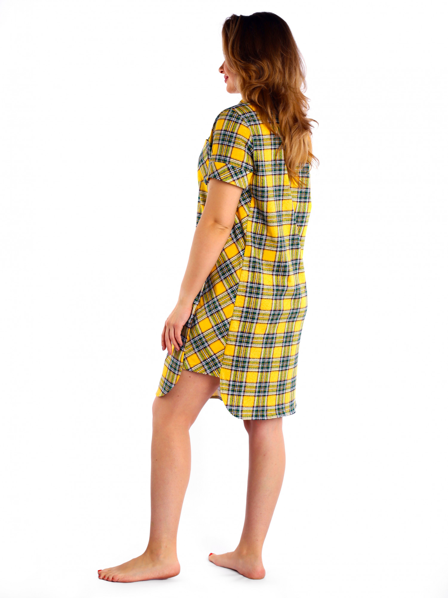 Халат женский кулирка на пуговицах "ГЕРДА" ЖЕЛТАЯ КЛЕТКА
