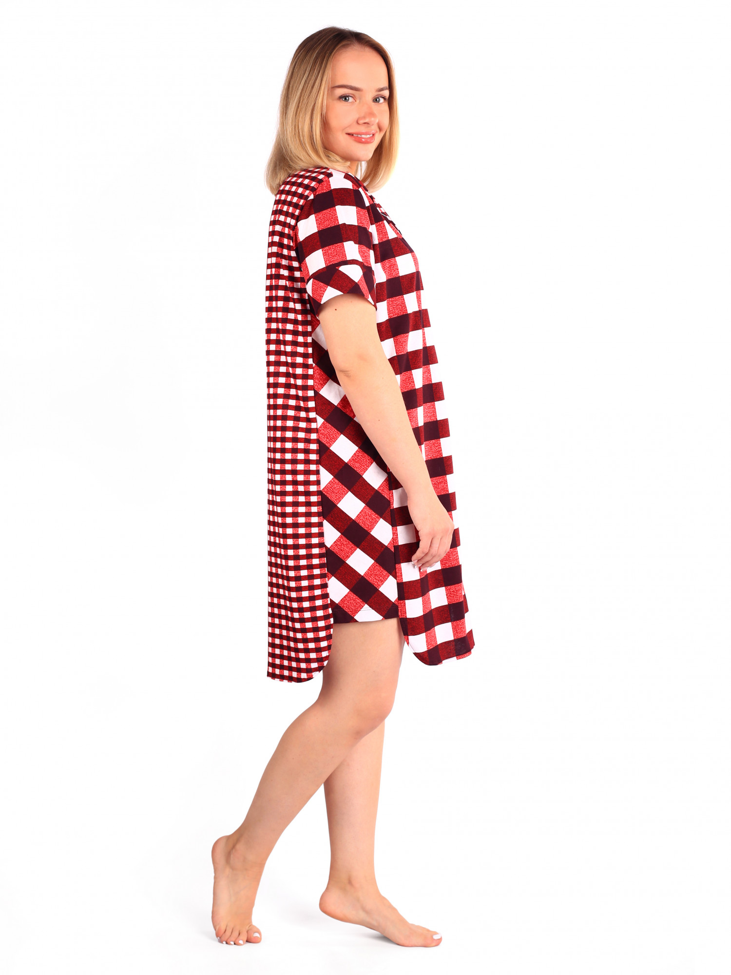 Халат женский кулирка на пуговицах "ЛЕРУА" КРАСНАЯ КЛЕТКА