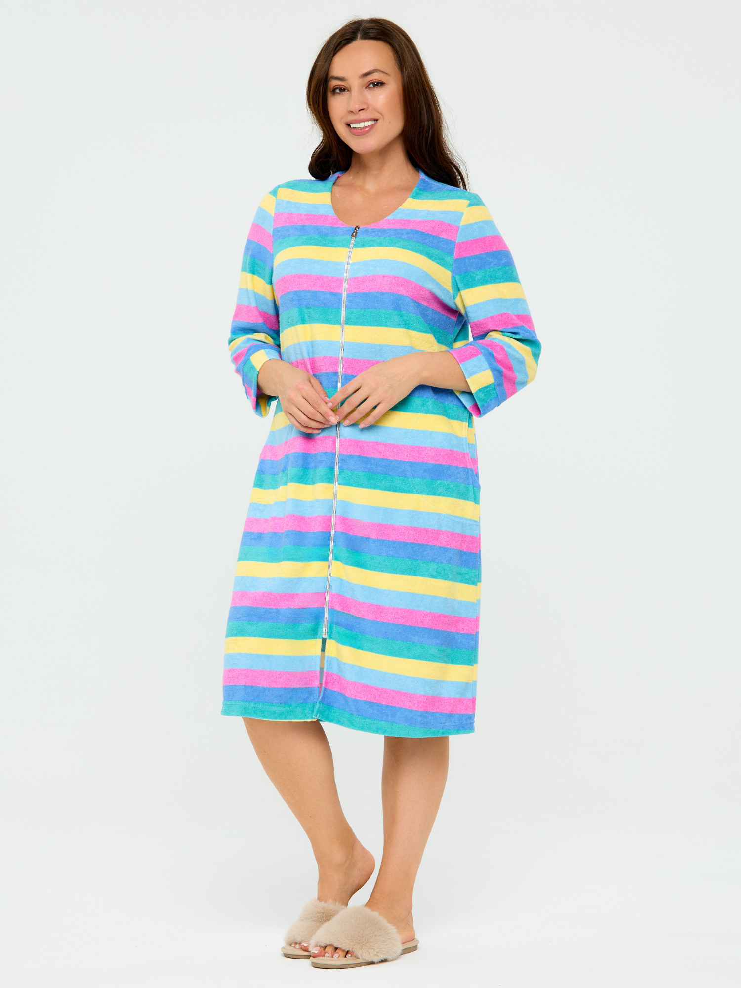 Халат женский махровый на молнии "РАДУГА"