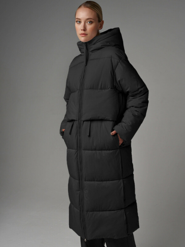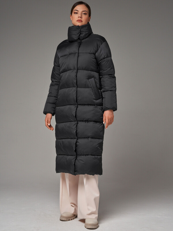 Пуховик прямого силуэта на молнии и потайных кнопках.