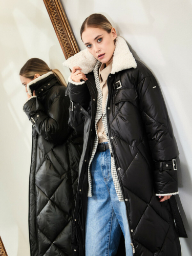 Двубортный пуховик прямого силуэта