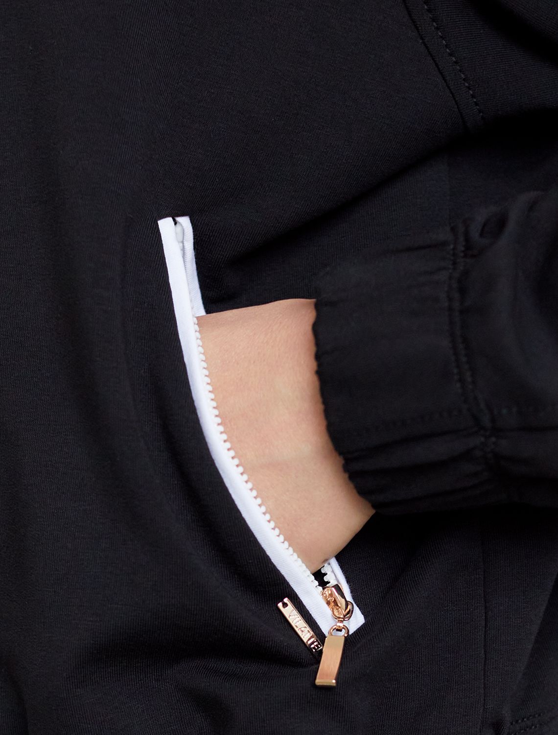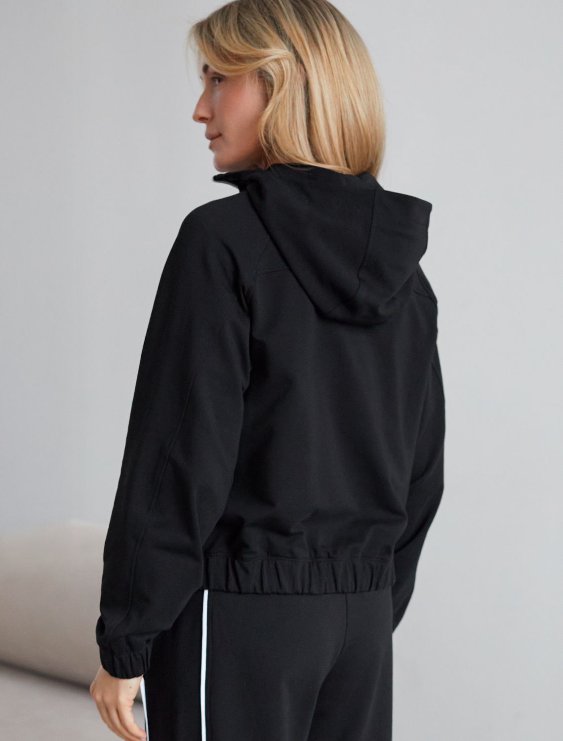 Худи на молнии из петельчатого футера двухнитки с эластаном без начеса D49.165 черный