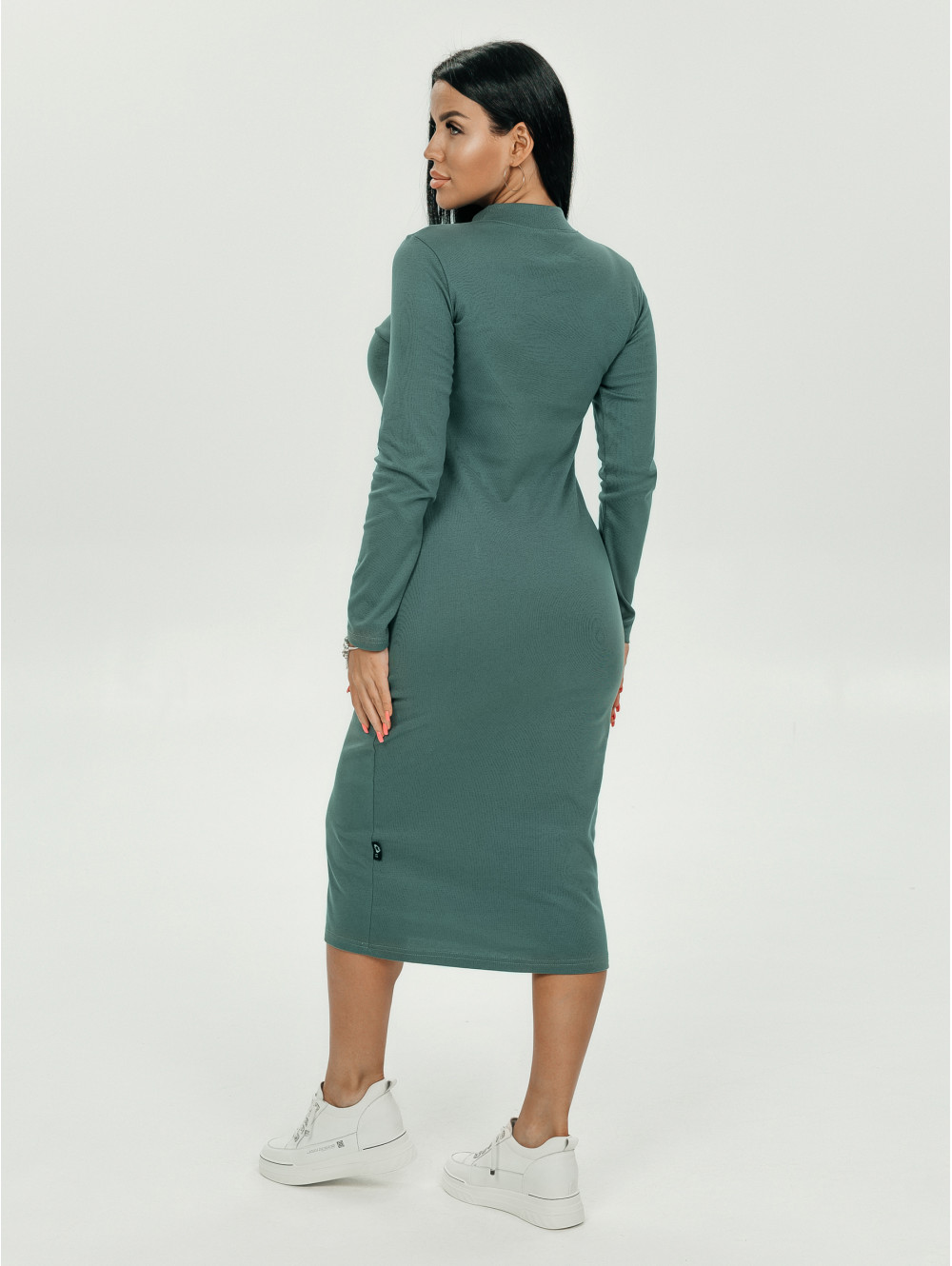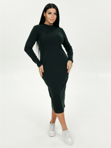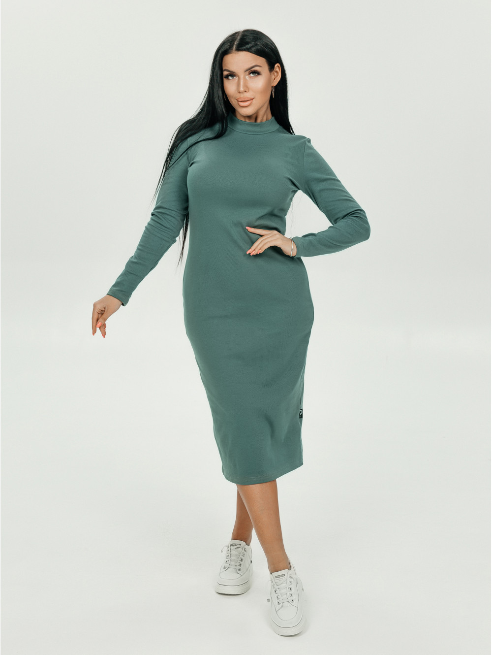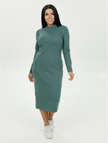 Платье прилегающего силуэта с длинным втачным рукавом и круглой горловиной.