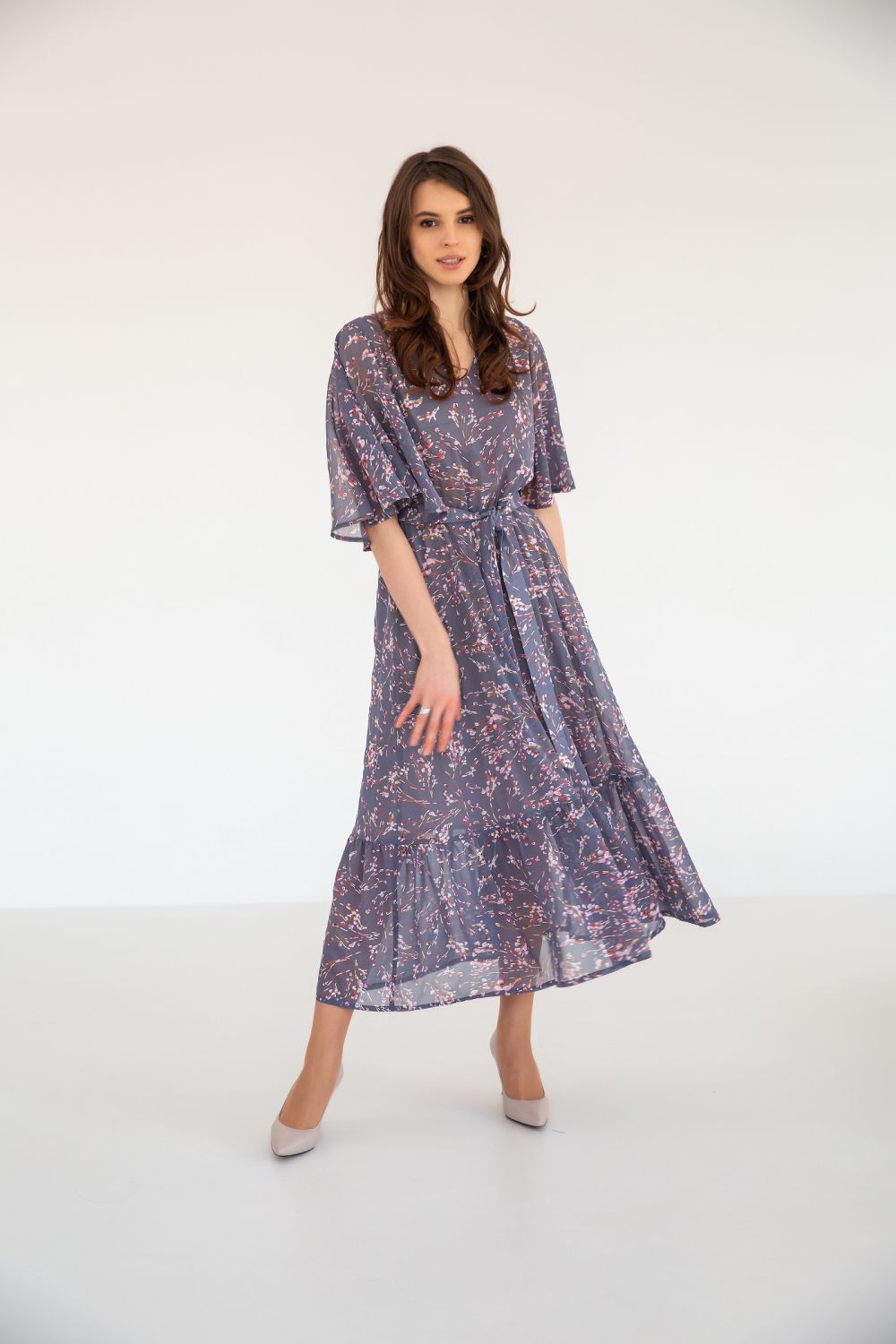 Красивое шифоновое платье - это основа любого стильного образа: нежного, элегантного, романтического или таинственного. Наше платье превратит любую девушку в грациозную нимфу. Свободный короткий рукав с разрезом - изюминка этой модели.