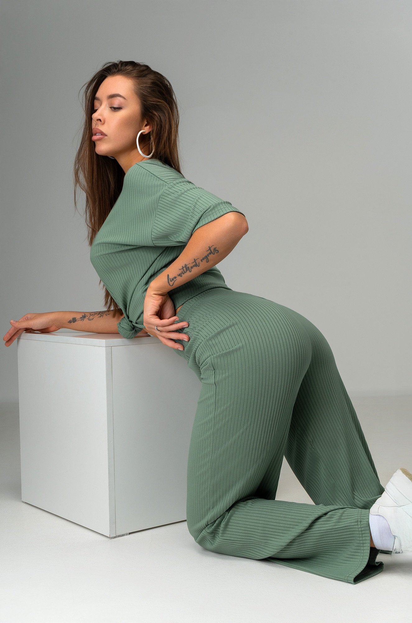 *замеры выборочные, могут незначительно отличаться. дома в универсальном зеленом цвете подарит комфорт и свободу движений. Трикотажный костюм двойка с брюками из фактурной ткани лапша создан для уютного отдыха и повседневного использования.