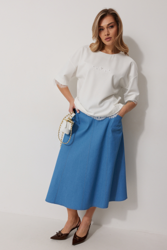 2280 джемпер 46-58 37 60% вискоза, 35% ПЭ, 5% спандекс Джемпер женский прямого силуэта со спущенной линией плеча. По переду авторская печать декорированная бусинами. Горловина округлой формы, обработана обтачкой. Рукав втачной одношовный, 3/4 длины. Низ изделия и низ рукава обработаны притачным ажурным кружевом. Длина изделия по спинке 60 см, длина рукава 45 см. 46-58
