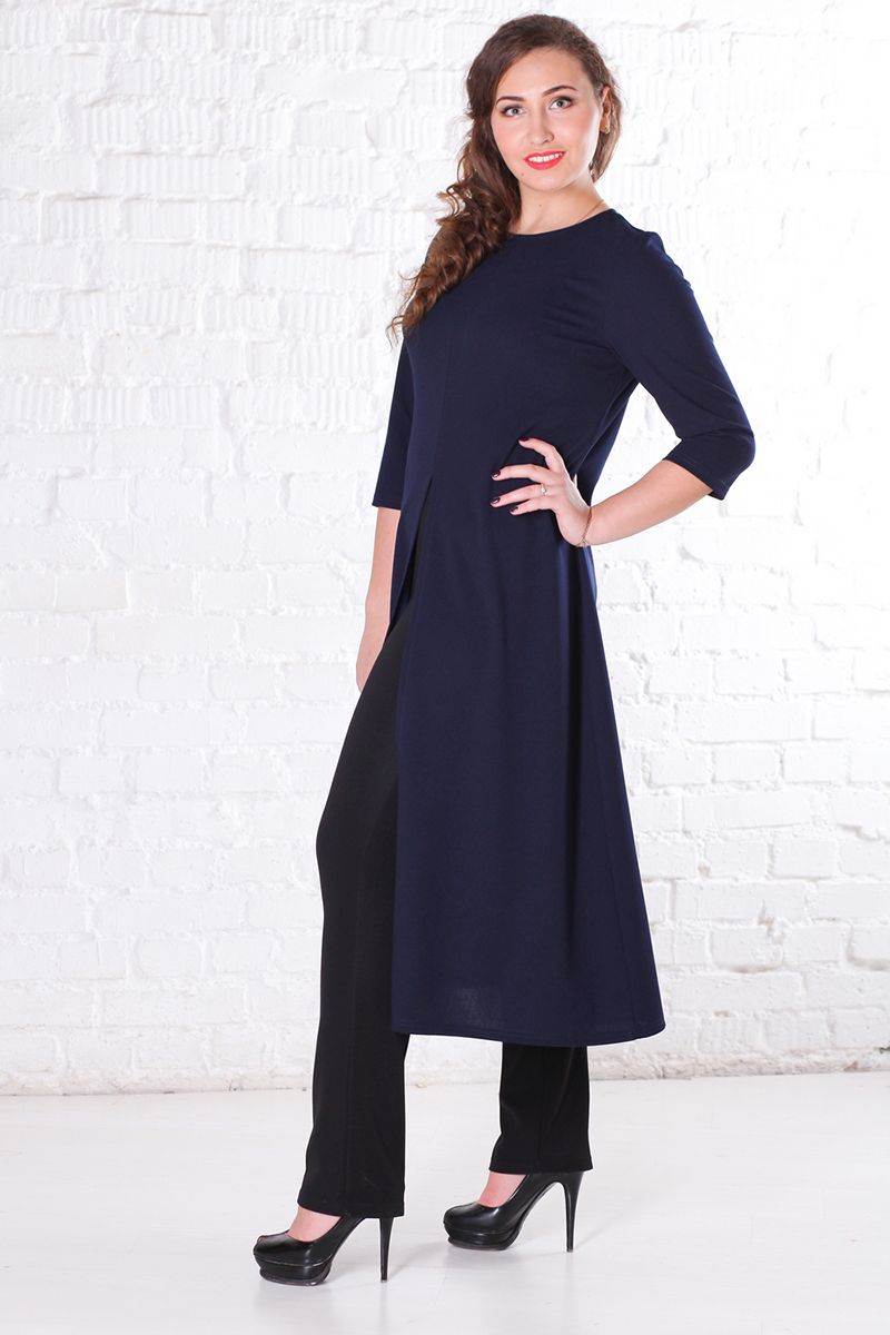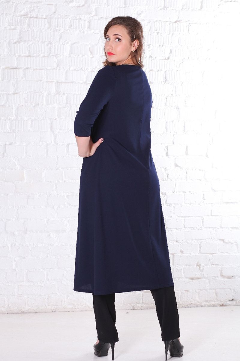 Удлиненный кардиган А-силуэта темно-синего цвета из крепа с рукавом 3/4. Кардиган станет прекрасным дополнением Вашего гардероба, т. к. сочетается с любым его элементом. В нем Вы будете чувствовать себя комфортно, а выглядеть стильно и неотразимо.