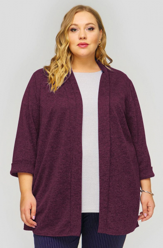 Удлиненный кардиган А-силуэта из крепа с эластаном. V-вырез горловины переда. По центральному шву переда разрез. Рукав расклешенный.