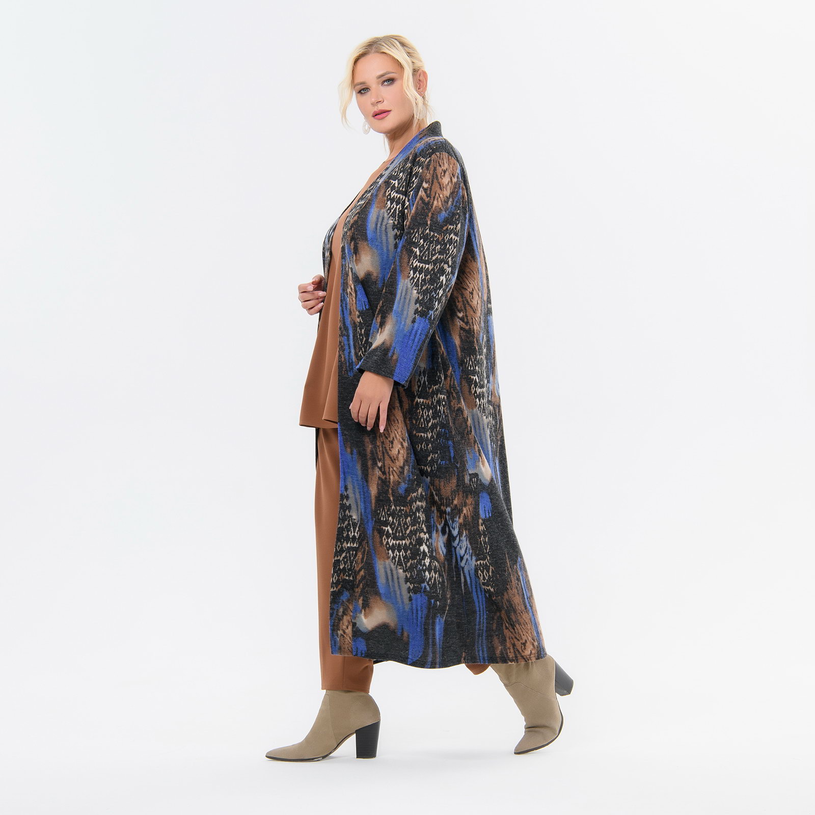 Кардиган длинный из джерси - ангора, принт "фантазия"