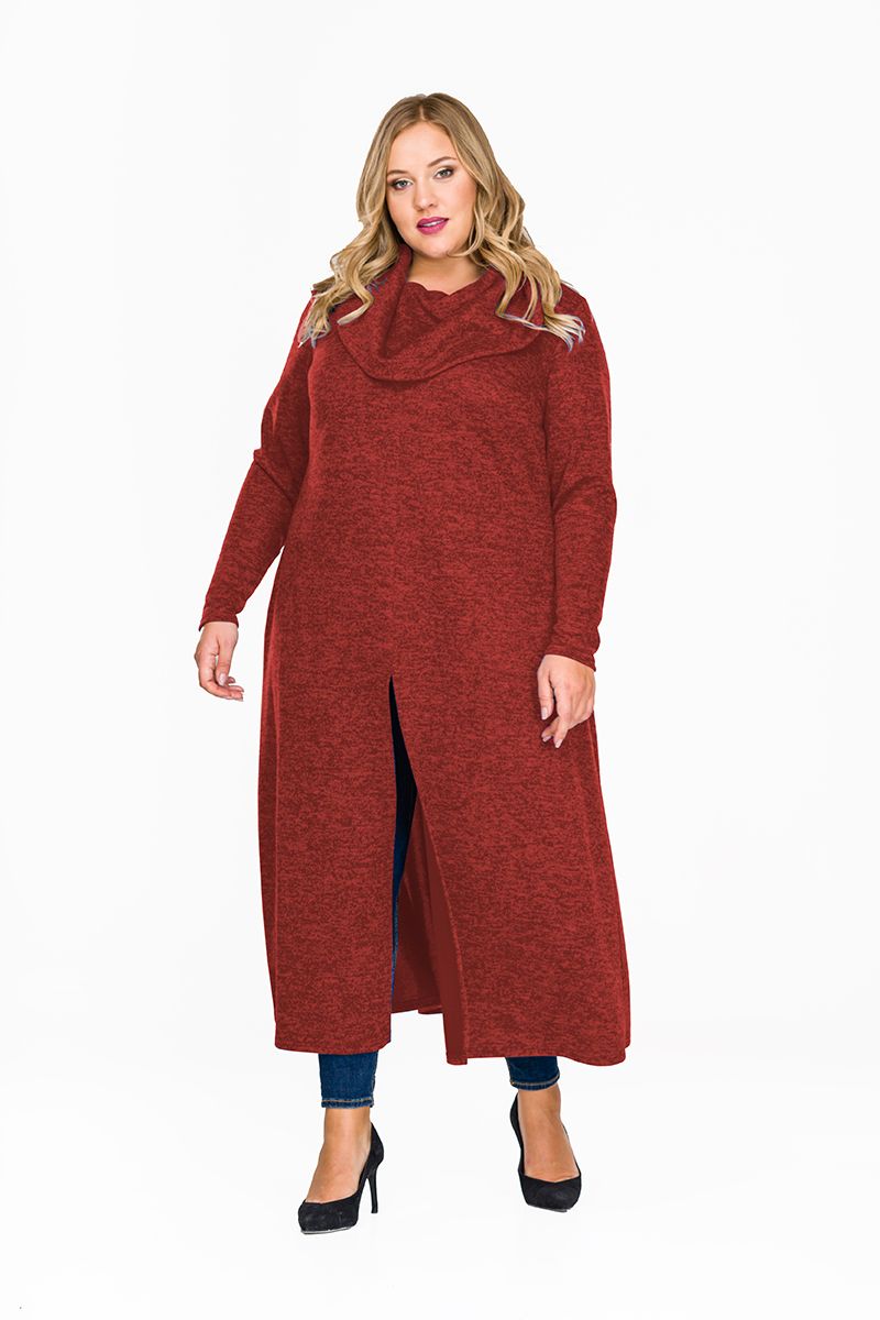 Кардиган длинный с воротником "хомут", бордовый меланж