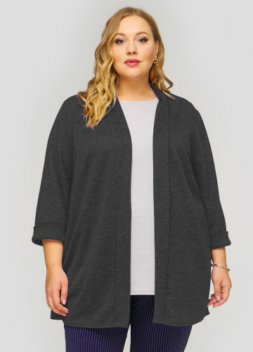 Удлиненный кардиган А-силуэта с длинным рукавом и воротником "хомут" из джерси. Кардиган станет прекрасным дополнением Вашего гардероба, т. к. сочетается с любым его элементом. В нем Вы будете чувствовать себя комфортно, а выглядеть стильно и неотразимо.