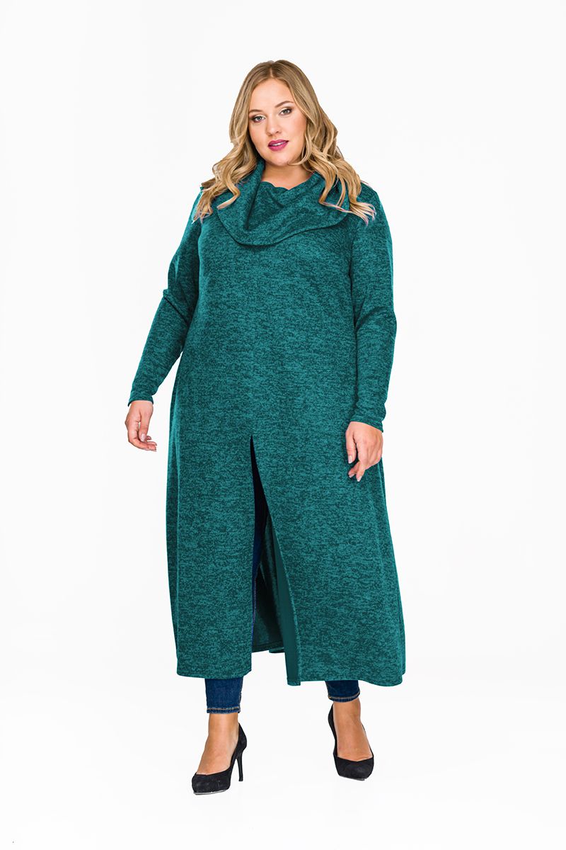 Кардиган длинный с воротником "хомут", зеленый меланж