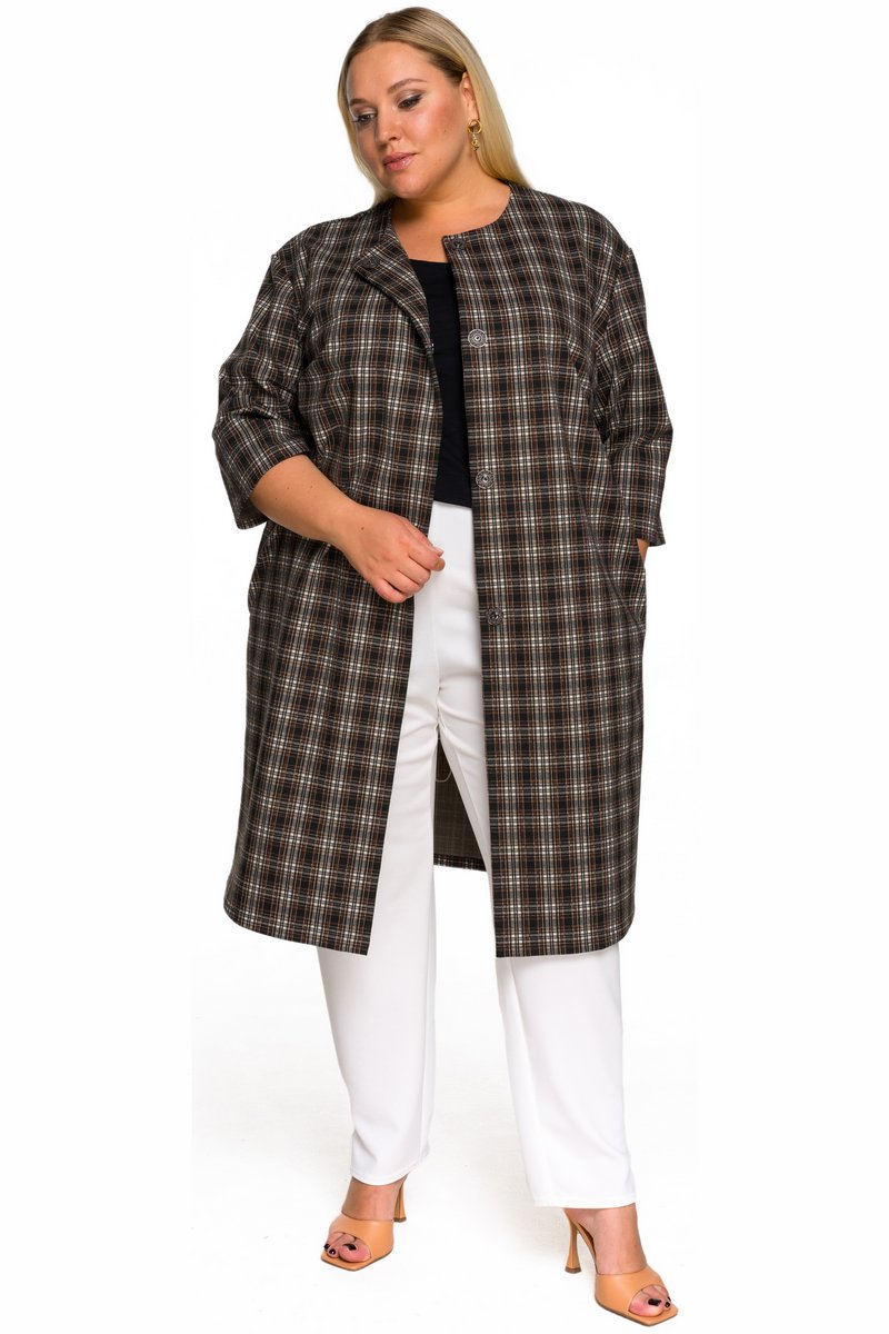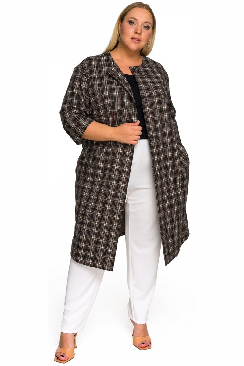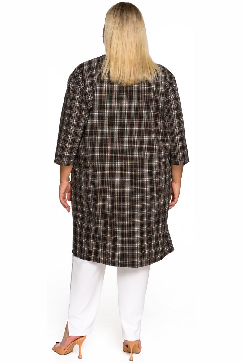 Кардиган из плотного джерси, клетка шоколадная