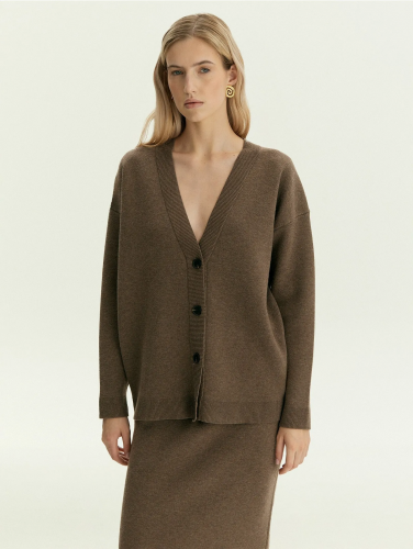 Базовый кардиган в цвете мокко создан для уютных повседневных образов. Его можно надеть и дома, и на работу, и посидеть в кафе.