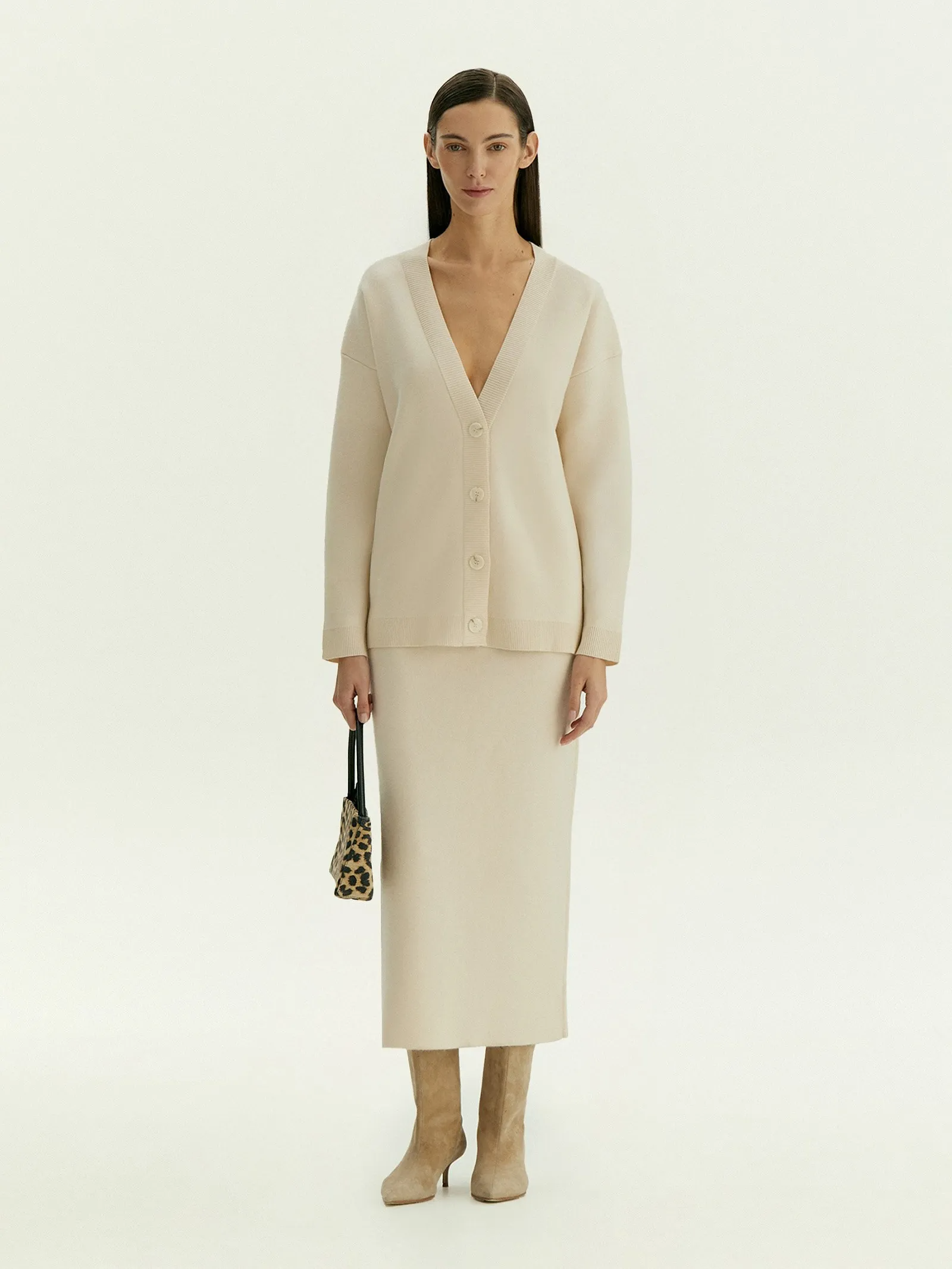 Завершить образ с кардиганом можно юбкой из комплекта.