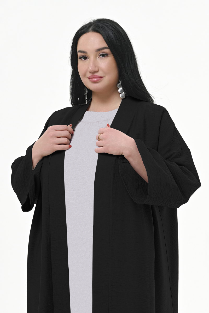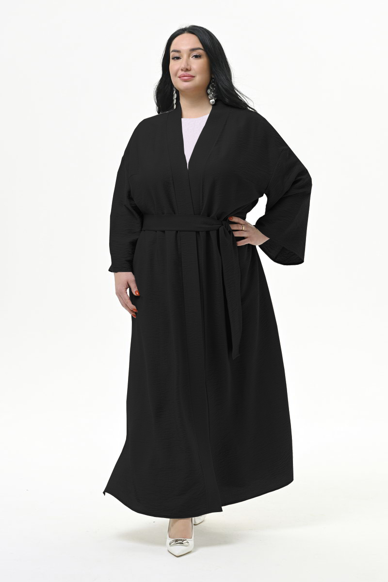 Кардиган - кимоно длиною в пол, из фактурной вискозы, цвет "черный"