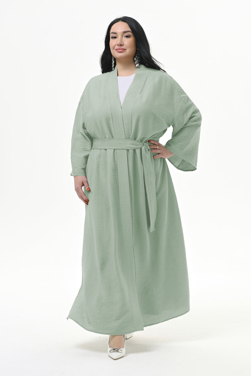 Кардиган - кимоно длиною в пол, из фактурной вискозы, цвет "мята"