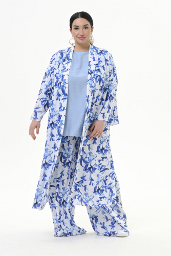 Кардиган - кимоно длиною в пол, из фактурной вискозы, цвет "небесный"