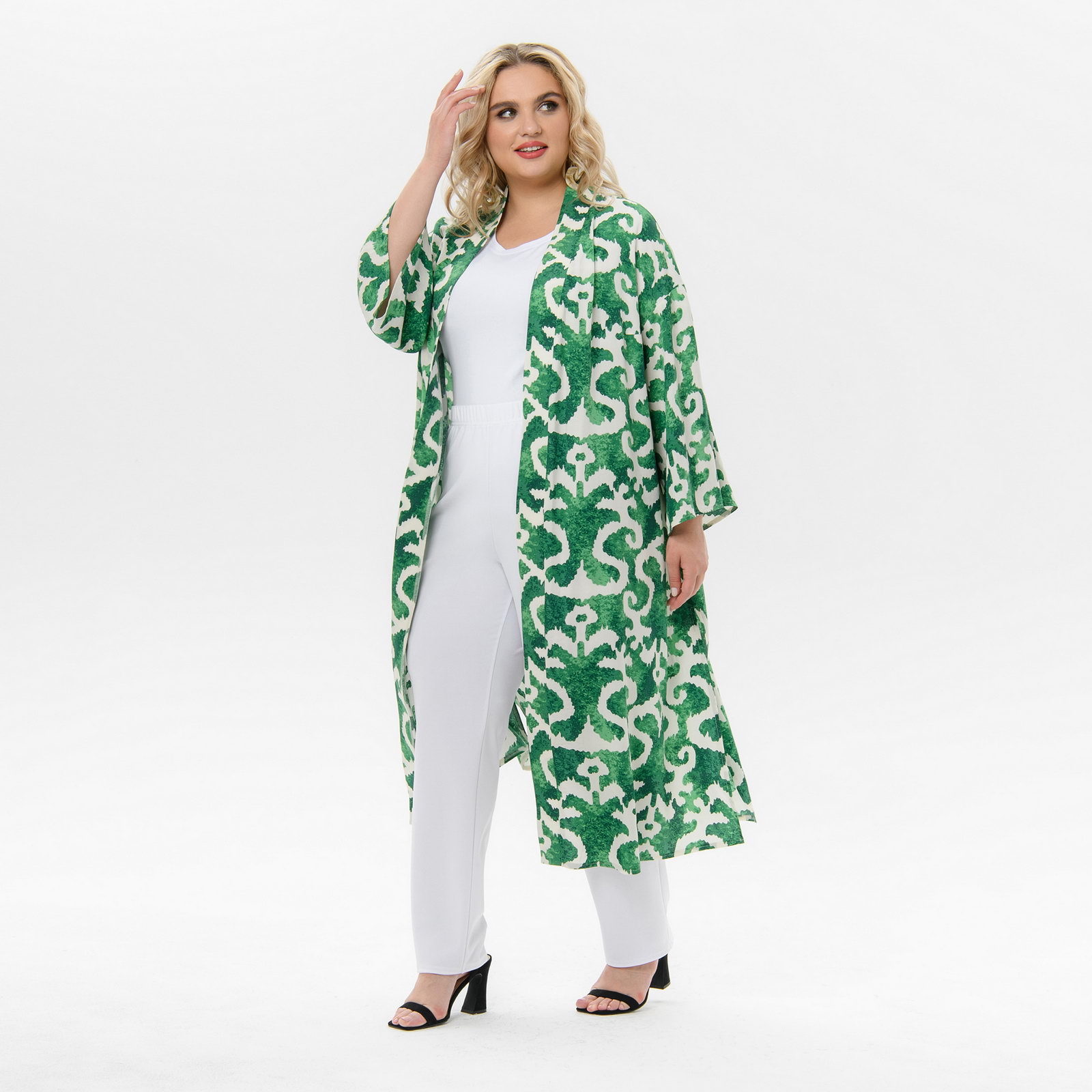 Кардиган - кимоно из вискозы, принт "зеленая абстракция"