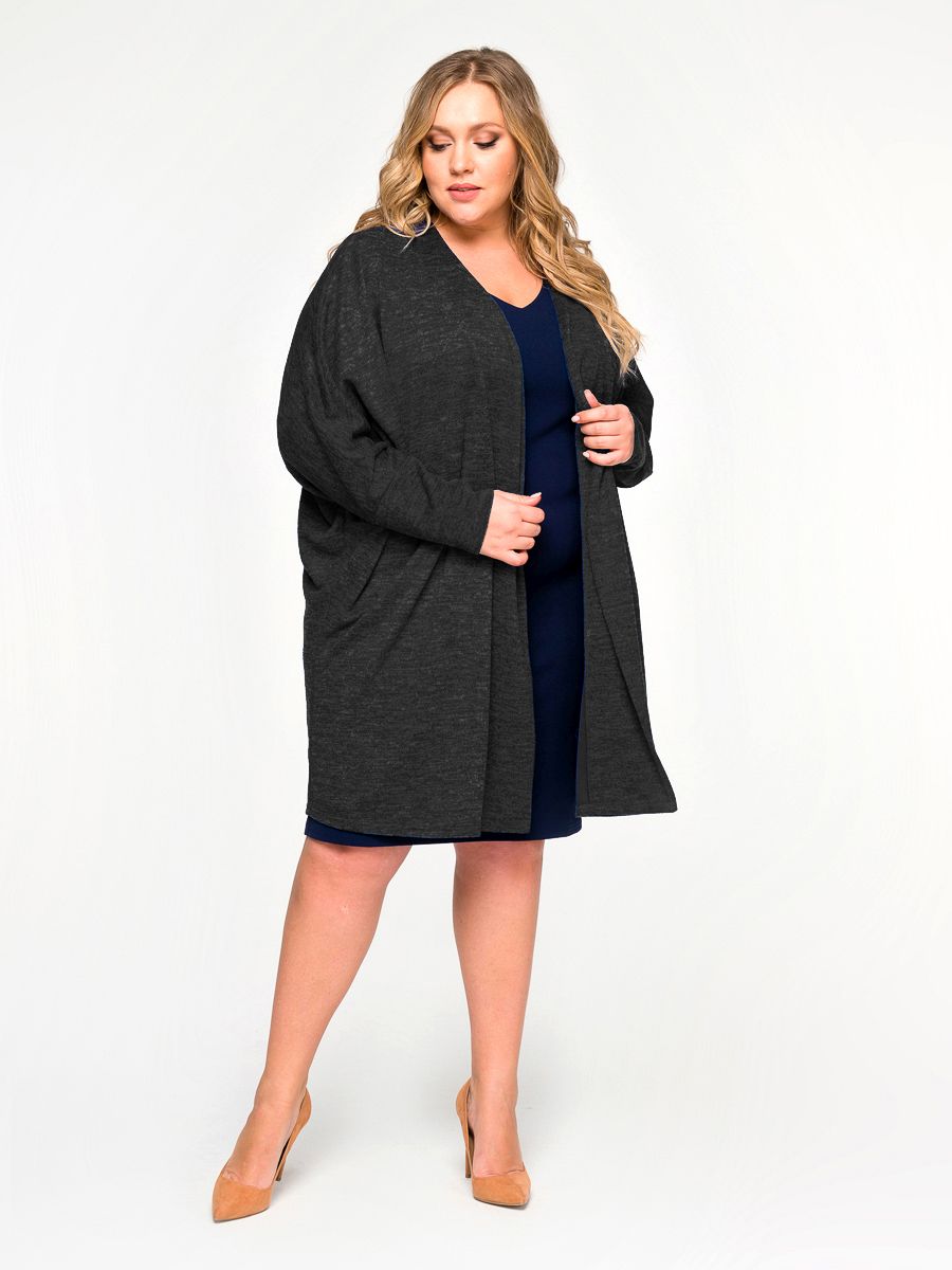 Кардиган "летучая мышь", джерси меланж темно-серый