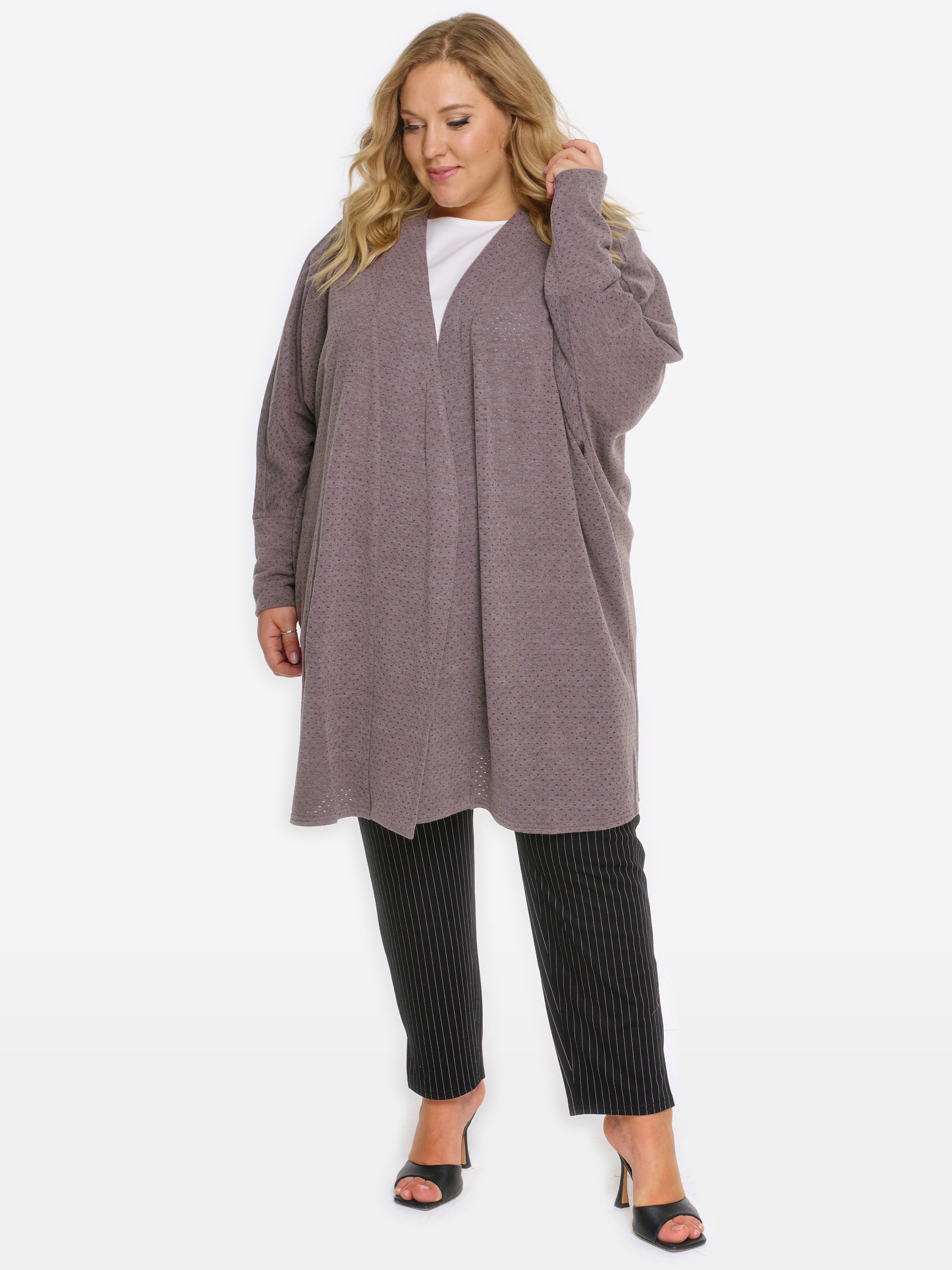 Кардиган "летучая мышь", джерси с перфорацией, цвет кофейный