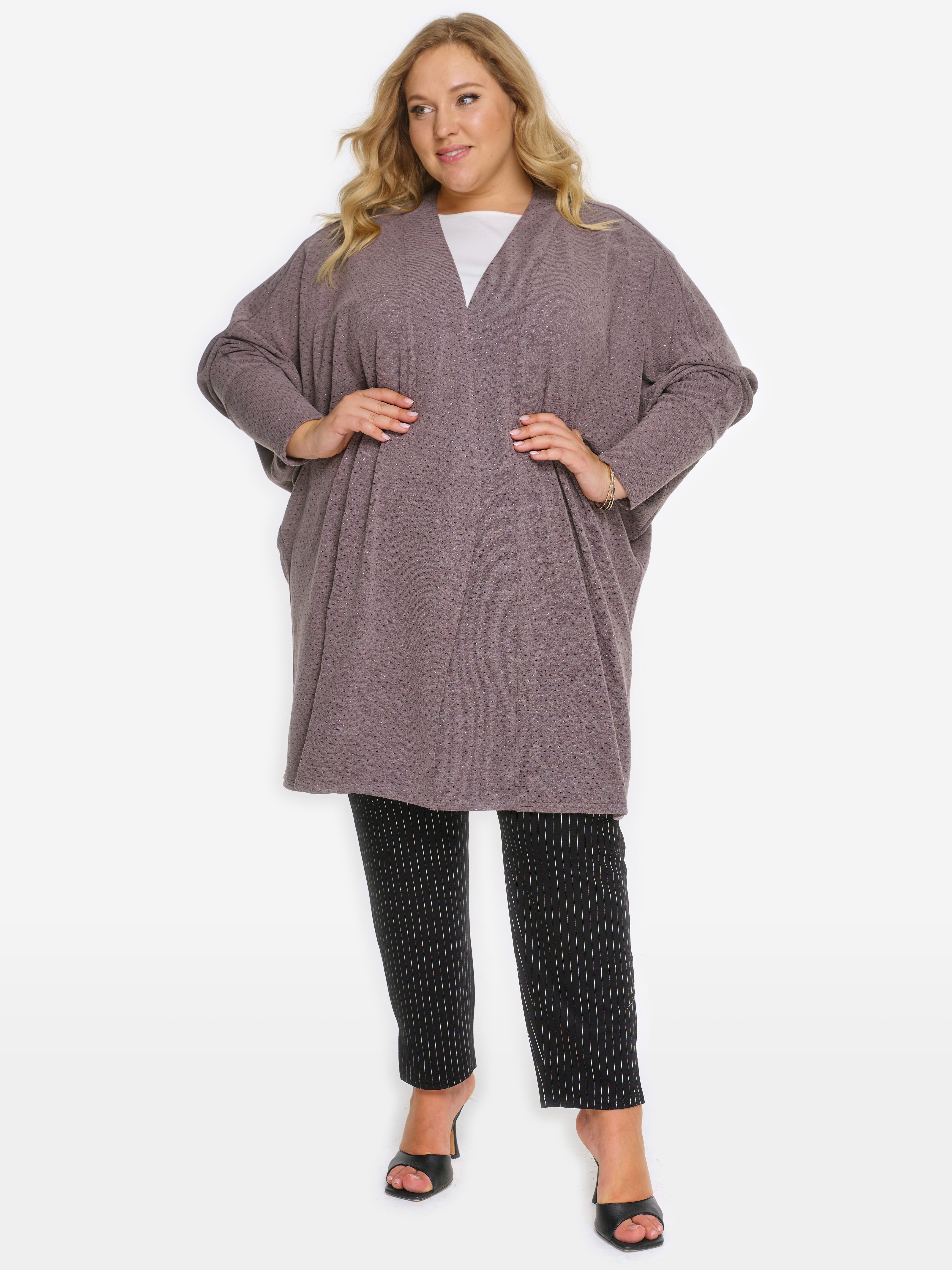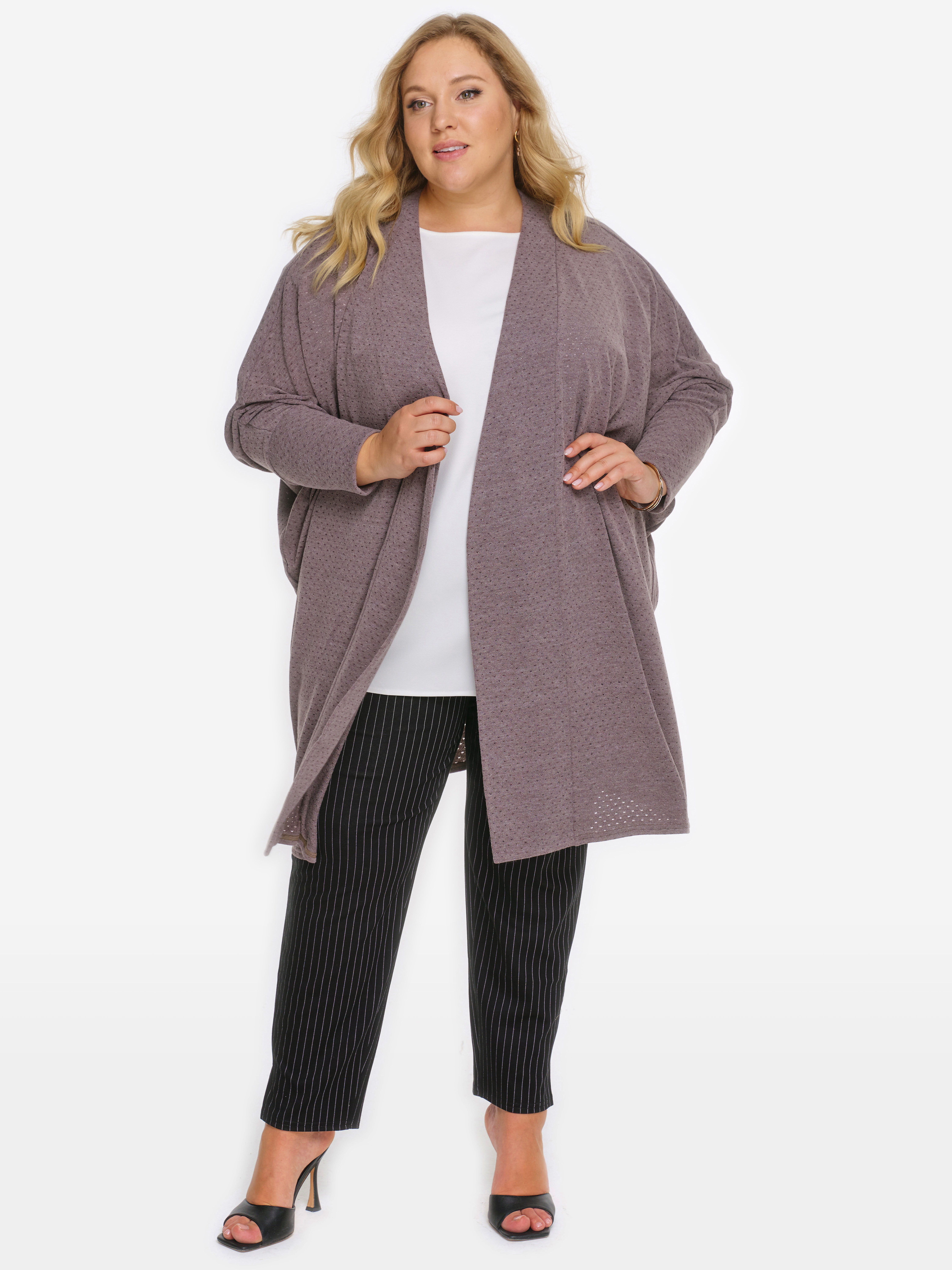 Удобный, стильный кардиган актуального кроя "летучая мышь" из джерси с перфорацией.