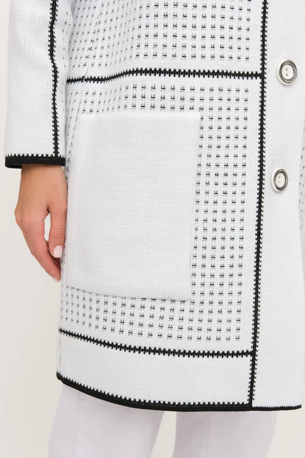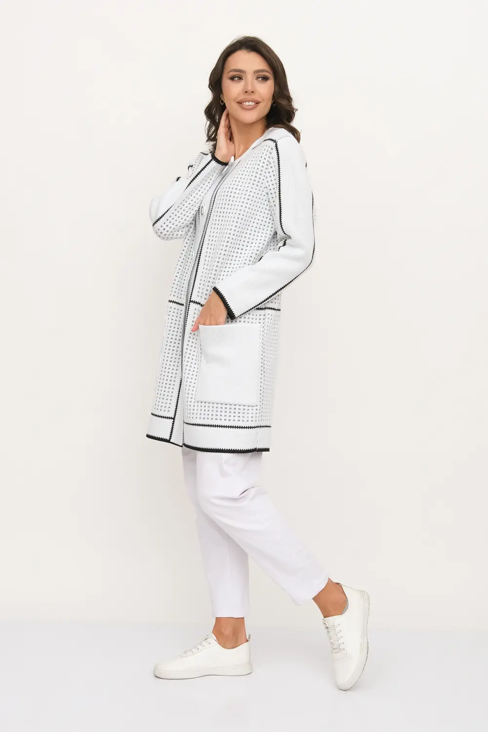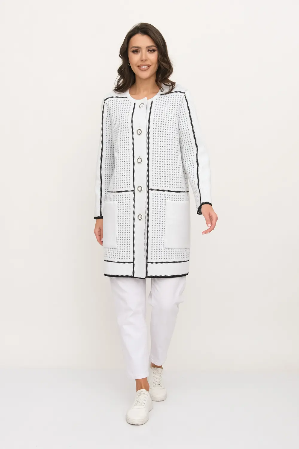 Трикотажный кардиган прямого силуэта. Круглая горловина,  рукава втачные длинные. Кардиган застегивается на пуговицы.