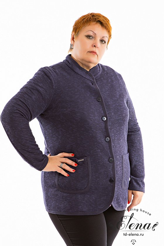 Уютный, тёплый кардиган из вязаного полотна с начесом. С втачным двухшовным рукавом, с застежкой на пуговицы и воротником-стойкой. Спереди размещены накладные карманы. Карманы, низ рукавов, низ изделия, воротник и борта обработаны широкой бейкой из полотна-компаньона.