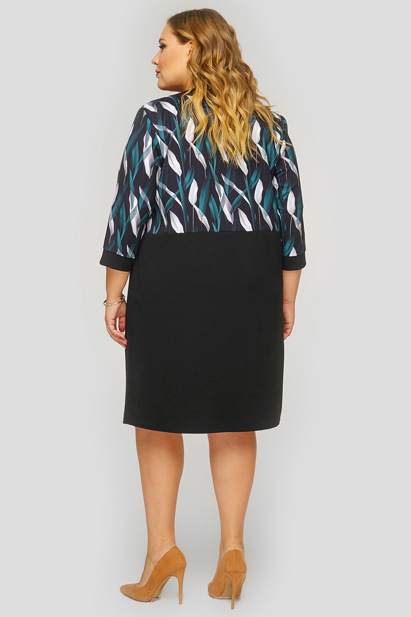 Кардиган прямого силуэта из крепа, верх принт "листья"