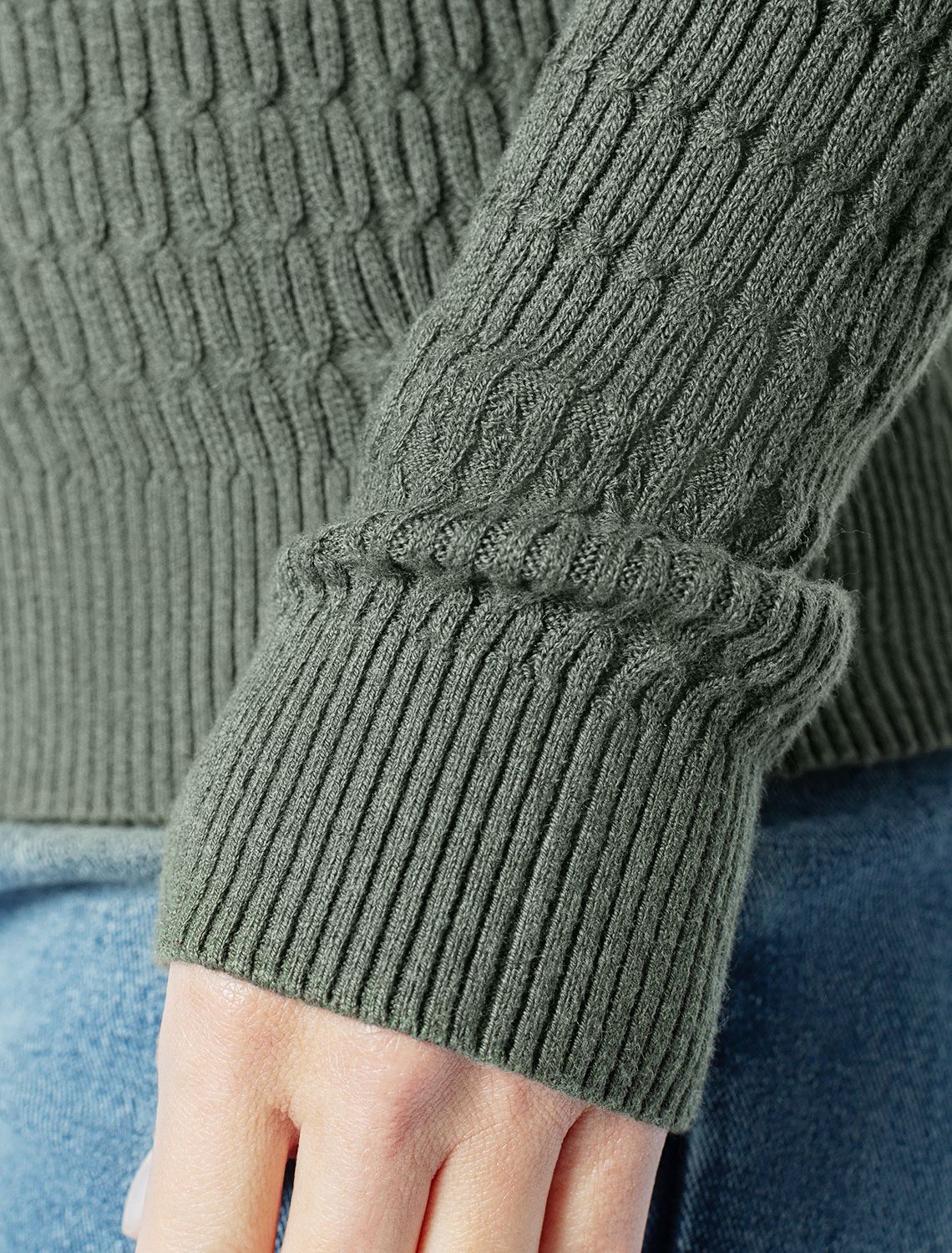 Кардиган тонкой вязки выполнен из хлопка с вискозой. Нежную пряжу, очень приятную к телу, дополняет ажурный узор - плетение косы напоминающий звенья колец. Застежка на пуговицы из натурального перламутра. Модель отлично впишется в весенний и летний гардероб, как самостоятельный верх или накидка на топ или платье. Комфортная длина и крой подходят для любой фигуры. темно-оливковый