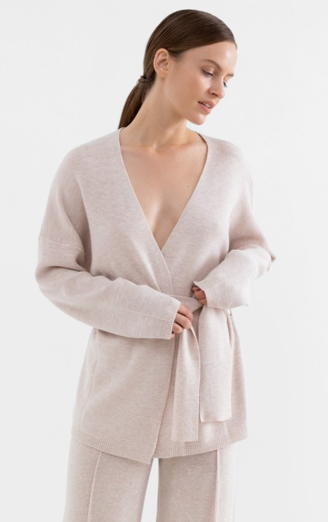 Кардиган на запах с поясом – интересное решение, если наскучили привычные модели. Как и другая трикотажная база, идеален для нестрогого дресс-кода и повседневных луков. Отметим прямой свободный крой и спущенную линию плеча, создающие комплиментарную посадку и непринужденный абрис. Модель выполнена из фактурного меланжевого трикотажа с добавлением шерсти, поэтому дарит особую мягкость, комфорт и красивый визуал. Пояс в комплекте позволяет расставлять акценты и управлять впечатлением от образа. Для комплекта рекомендуем трикотажные брюки со стрелками из коллекции CONSO. 34% полиэстер, 20% вискоза, 19% нейлон, 17% акрил, 10% шерсть