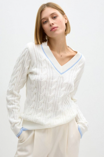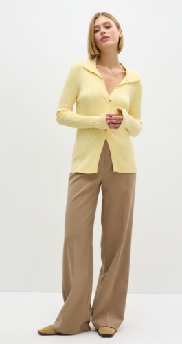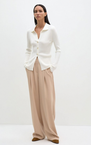 Базовый пуловер фактурного плетения кашкорсе создан как альтернатива рубашке для легких весенних образов. Модель удлиненная, на трех декоративных пуговицах, поэтому презентует изящные V-образные вырезы и расслабленное впечатление. Эластичное вискозное полотно вкупе с втачным рукавом и отложным воротником создает графичный силуэт. Стилизуйте с любимыми предметами низа на высокой посадке.