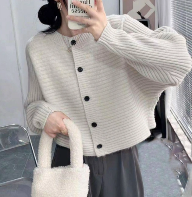 Горизонтальная вязка с манжетами и круглым горлом