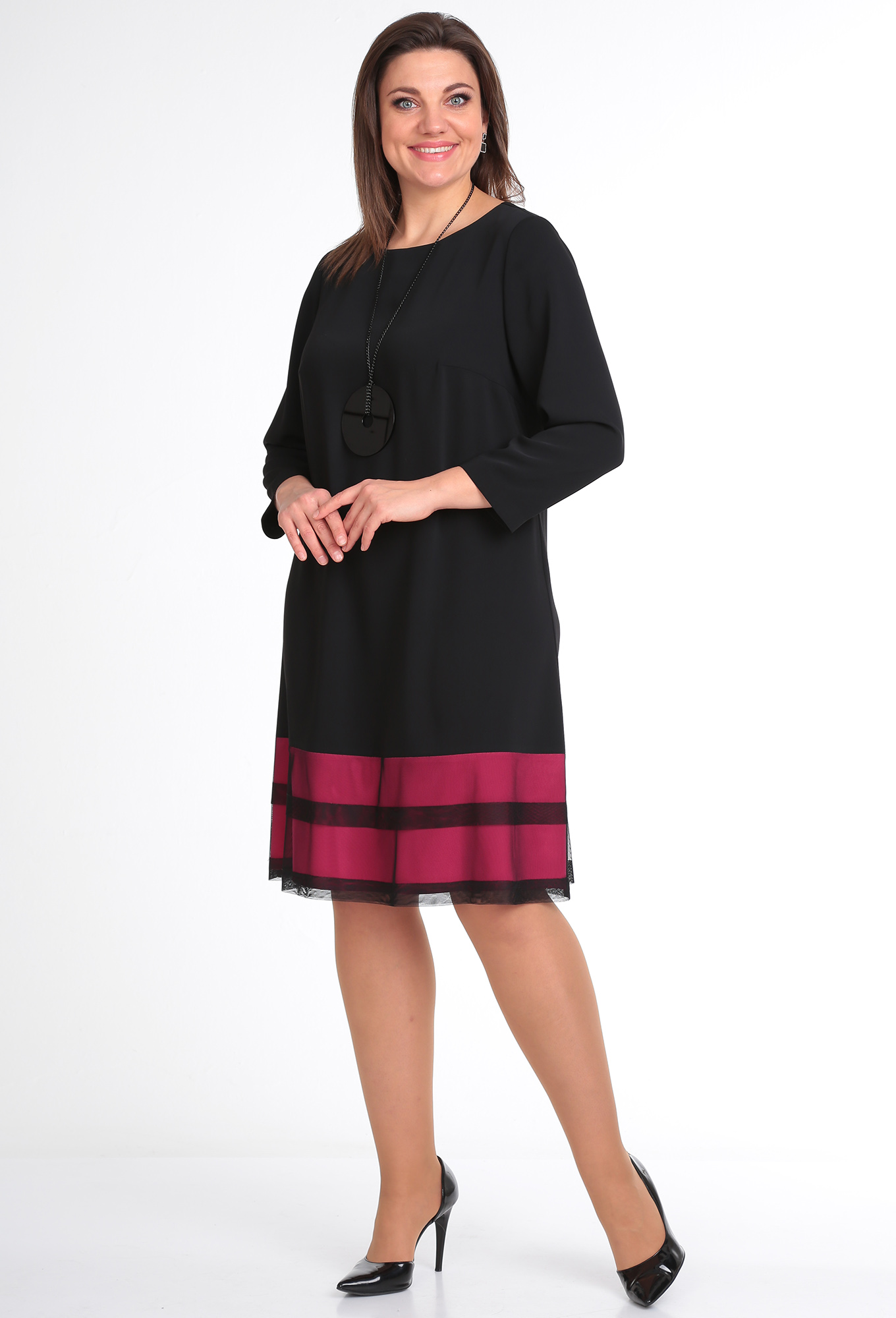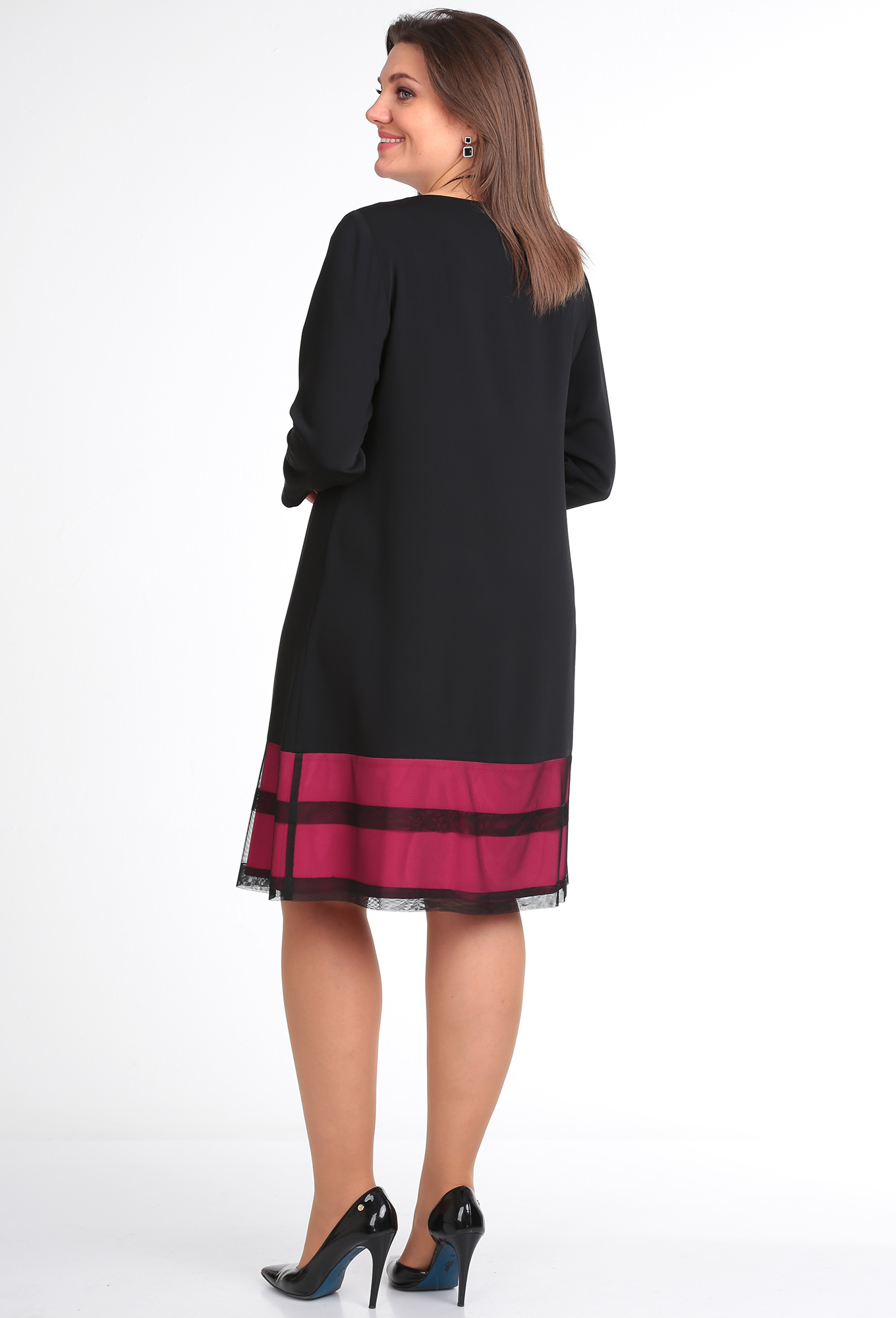 Платье женское полуприлегающего силуэта , с округлым вырезом горловины и втачным рукавом . По низу платья обработан притачной волан из декоративной сетки и контрастной ткани . Длина рукава 54 см , длина платья 95 см